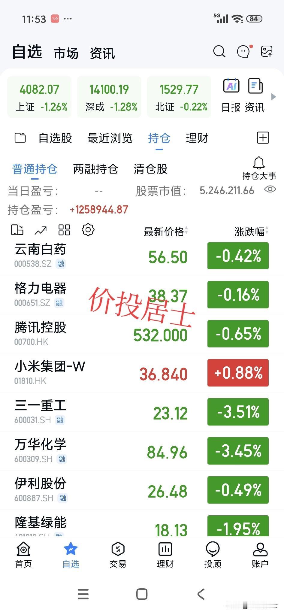 股票不是用来卖的,相反是需要我们一直买入的。就像巴菲特自己说,他其实是美股最大的买家! 不断的买入并持有资产才会实现自身身家的水涨船高。为什么有卖的念头,多数人还是有高抛低吸的思维。而对于价值投资者来说除非持有的资产高估的令人发指,有了更好的投资标的与基本面恶化,否则卖出其实和价值投资者无关的[祈祷] 所以每每我总是和大家谈笑风生着实盘账户的大幅度回撤,甚至于很多朋友比我还关心我实盘账号的回撤[笑哭] 也可以说每个人的关注点不一样吧,我对股票的关注点就是不关注短期股价波动,不关注市场波动,我写市场方面的东西是因为我要写头条,需要充实一下内容,仅此而已。 昨天出来点闲钱,想补点的,可惜挂的单没交易成功[笑哭]主要昨天我也忙,下了单就放在那里了,没看盘[祈祷]