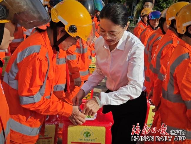 2月12日,在2026年春节即将到来之际,海口市城市管理局、海口市乡村振兴投资发展集团有限公司、海口市环境发展有限公司在海口分点开展一线环卫工人春节走访慰问活动,向秀英、龙华、琼山、美兰四个区共10726名一线环卫工人送上大米、食用油等慰问物资,传递市委、市政府的关怀与温暖。