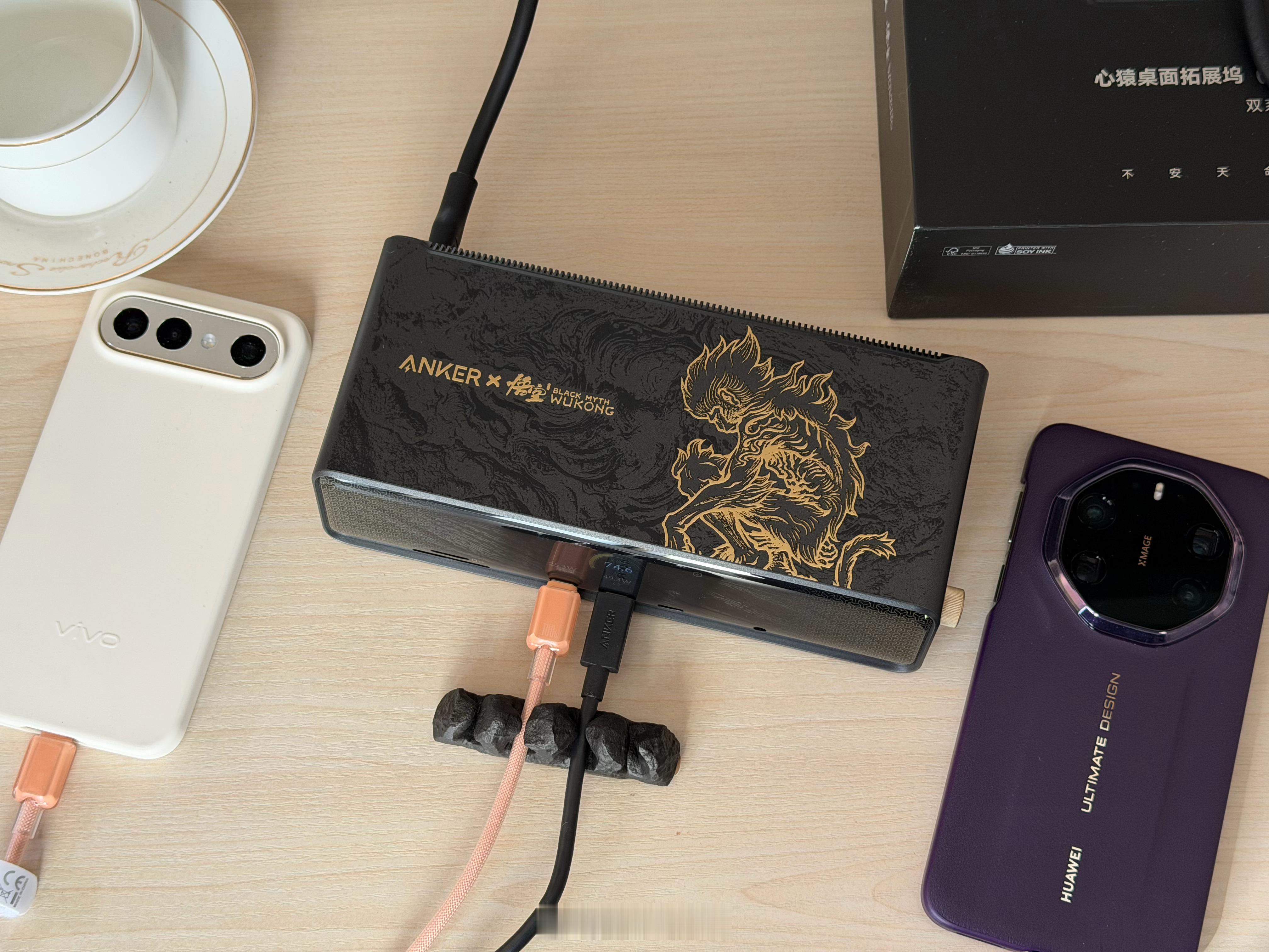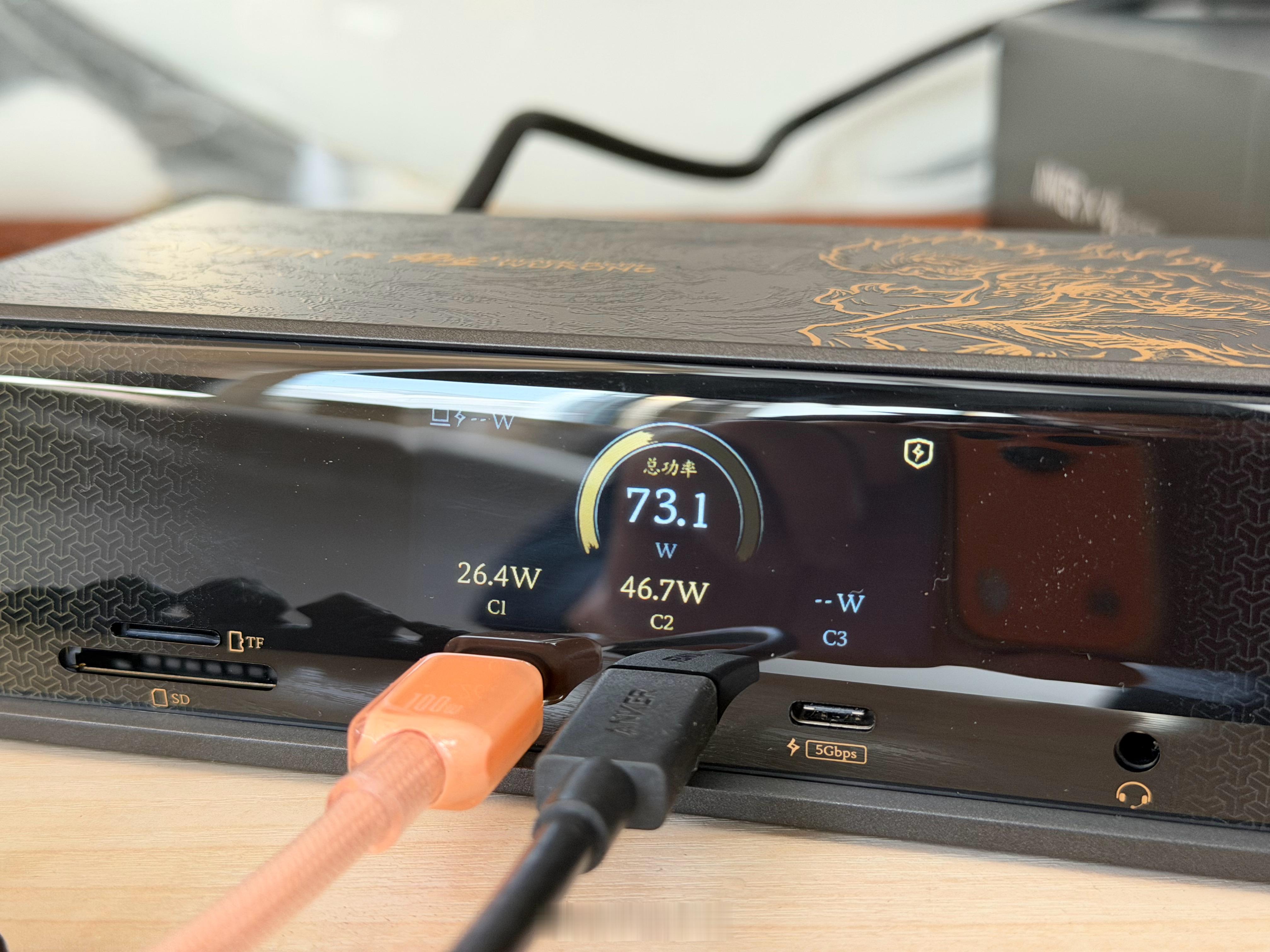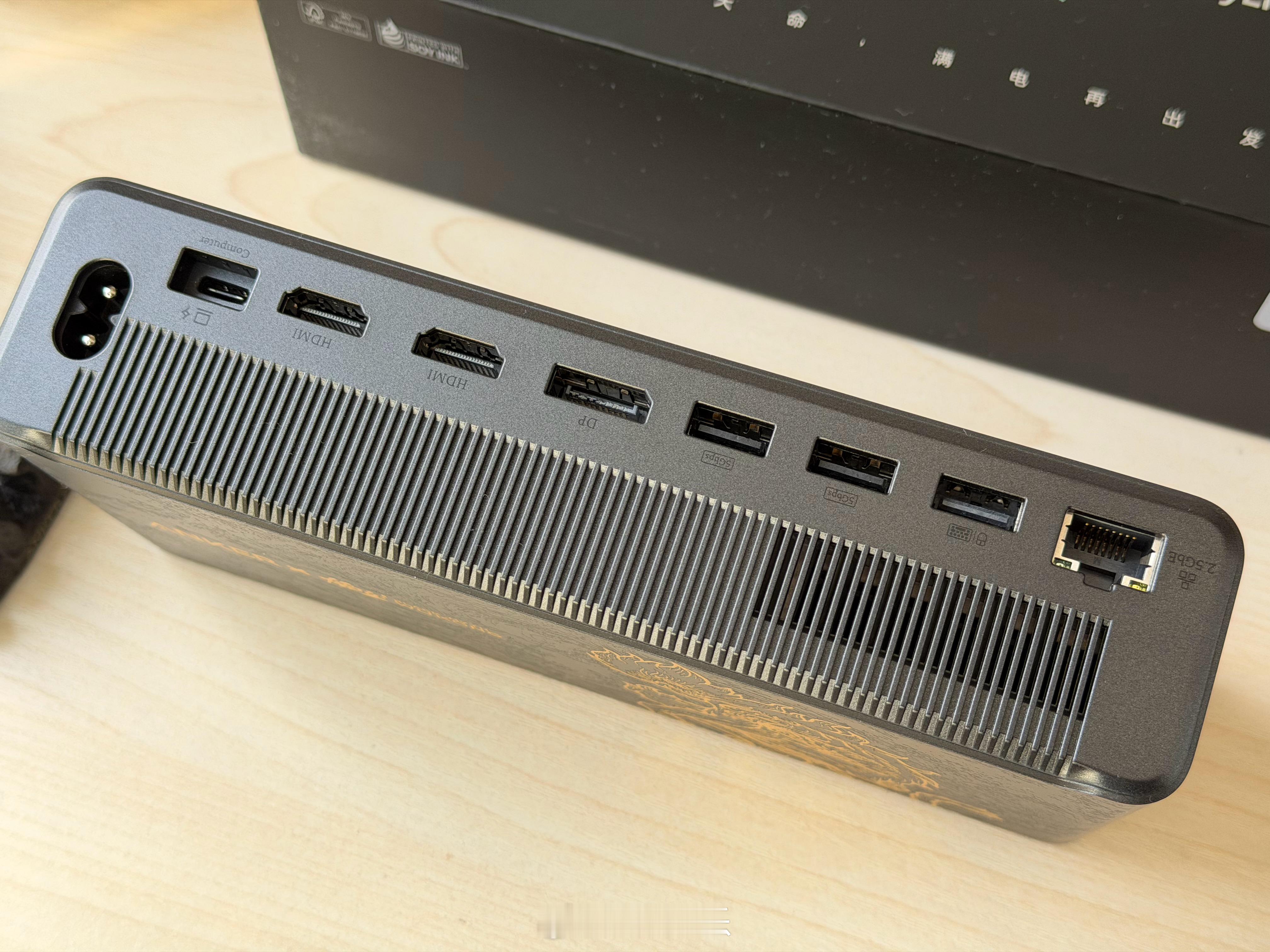 打算过年假期在家玩黑神话悟空的朋友,我替你体验了这套ANKER安克和黑神话悟空联名款的【14合一心猿桌面拓展坞8K四屏异显】,真的是太帅了,满满的黑悟空国潮元素:“黑金”主色调,2.5D浮雕工艺,将《黑神话:悟空》中“心猿”形象立体化呈现。这算是我用过最高端的扩展坞了,有一块能显示当前状态和功率的屏幕,右侧一个金色旋钮,模具凹刻的闪电图案叠加金属漆,转动时“咔哒”声清脆,细节很精致!有点东西