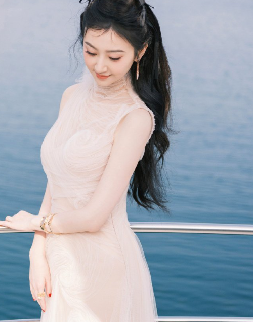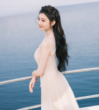 古力娜扎太美了,白色花朵抹胸半身蛋黄长裙,高级感的优雅。娜扎