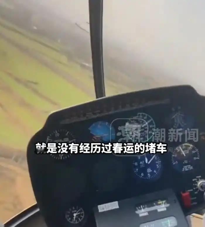 近日,江苏的江先生驾驶直升机从南京返回淮安过年,全程206公里。原本驾车需3小时的路程,他仅用50多分钟就抵达。在空中俯瞰地面高速拥堵的景象,他略带凡尔赛地调侃:“没经历过春运堵车,算是人生一大遗憾。开直升机,一点都不堵。”