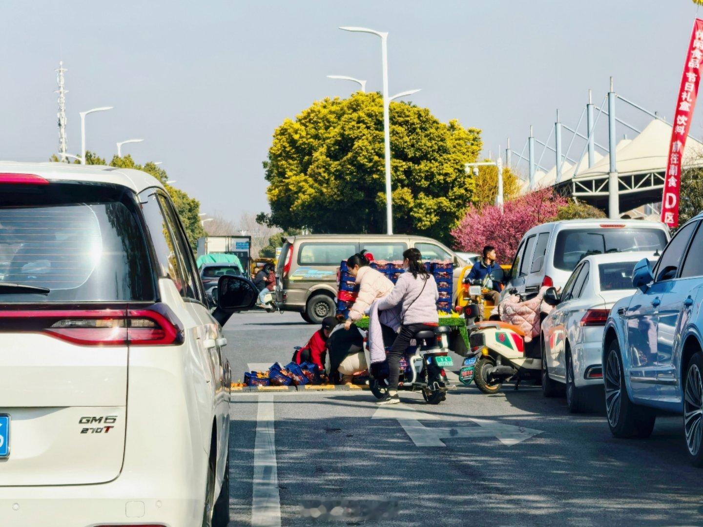 回家路上随手拍路过某水果批发市场路段,一辆运货的三轮车上水果掉落一地,几位路人立