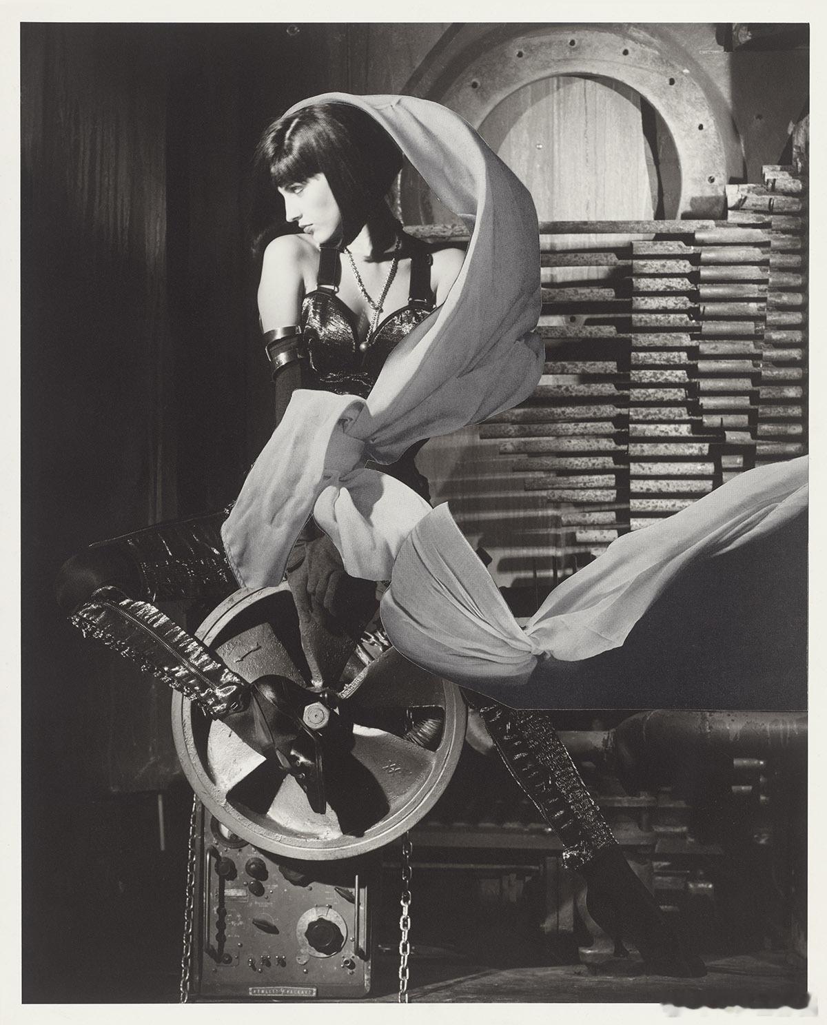 Brad Branson的摄影风格以融合 20 世纪 30 年代好莱坞的戏剧张力与 80 年代洛杉矶夜生活的灵动活力而著称。在当时洛杉矶文化圈的核心地带,Branson的工作室在入夜后便会摇身一变为名为“Power Tools”的顶尖夜总会,引得无数演员、音乐家与艺术家流连忘返。在Branson看到Fritz Kok充满未来主义色彩的画作后,两人正式开启了以“Indüstria”为名的跨界协作。他们共同开创了一种全新的视觉美学,将摄影、图形设计与拼贴艺术天衣无缝地结合。