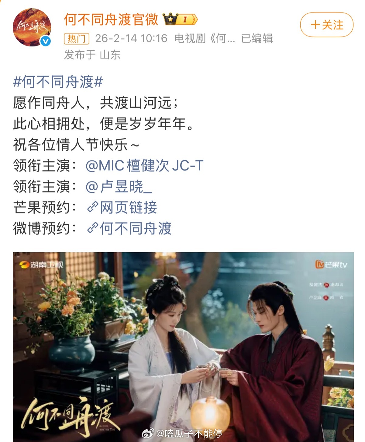 檀健次、卢昱晓何不同舟渡第一张合照来了,很配的两位,这部剧肯定很好看👌🏻