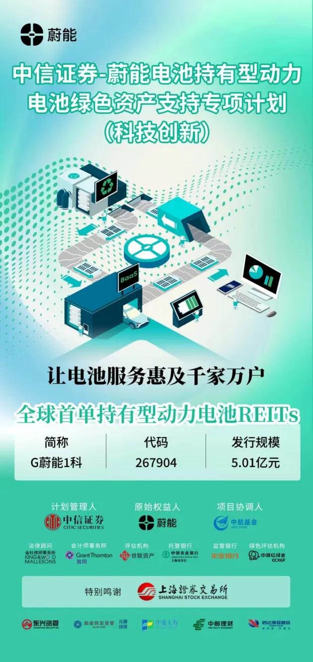 2026年2月11日,由中航基金作为项目协调人的“中信证券-蔚能电池持有型动力电池绿色资产支持专项计划(科技创新)”成功发行。