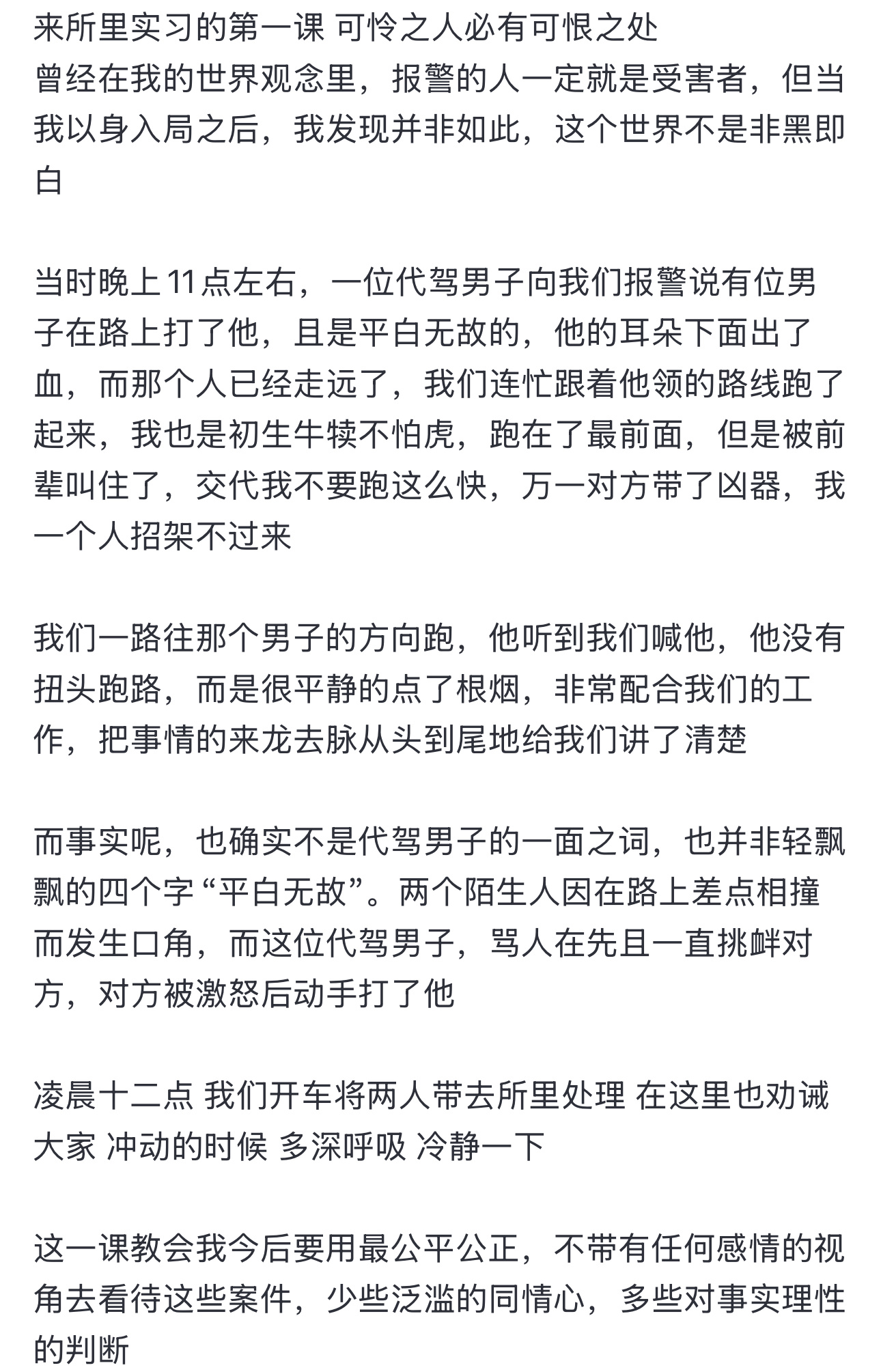 一位实习民警的真实感悟……