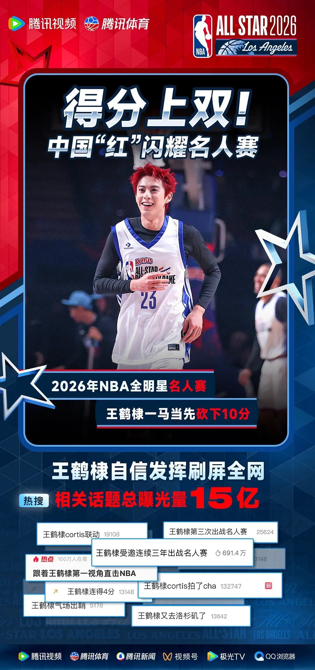 恭喜🐒 王鹤棣3️⃣次NBA名人赛十全十美🎉 星河入梦官宣全球上映🎉亲爱的