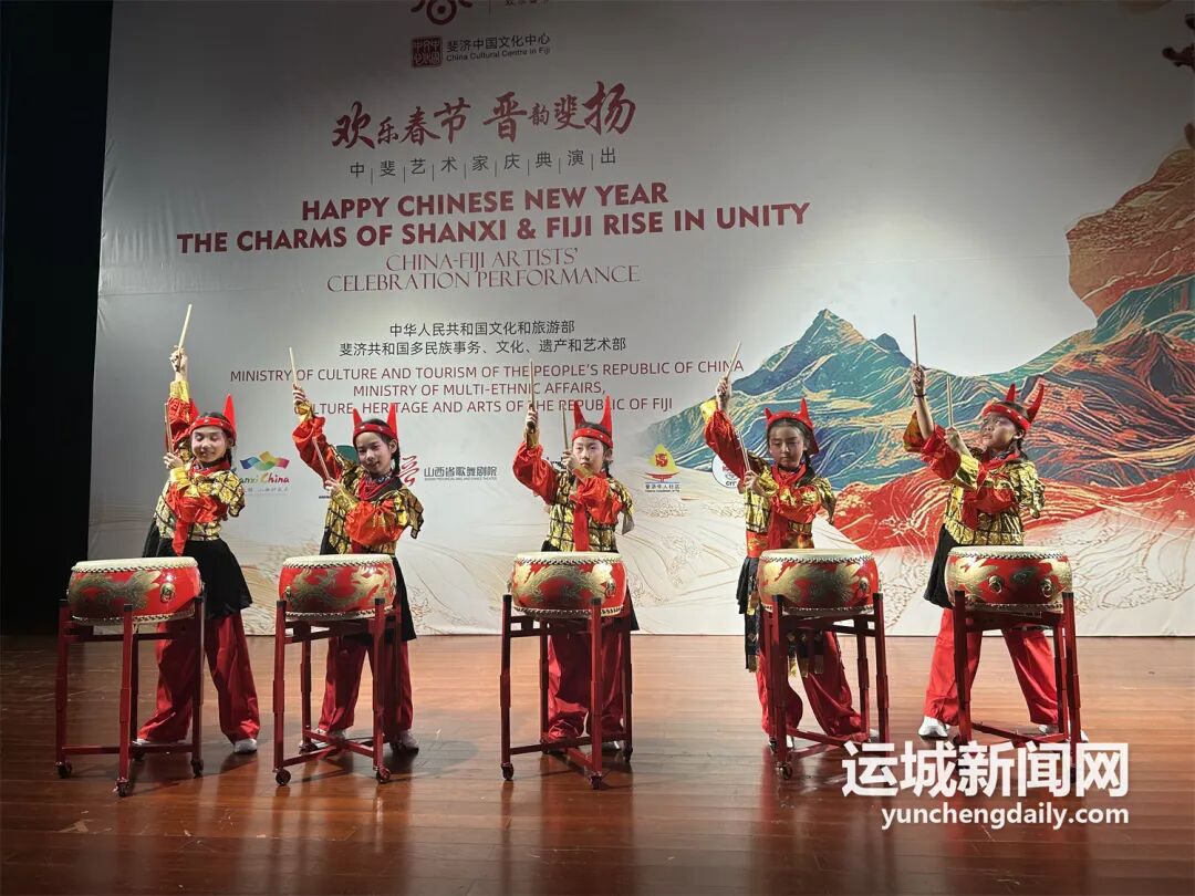 运城晚报讯2月10日、11日,受山西省文化和旅游厅特邀,新绛县西街实验小学绛州鼓乐队参加了南太平洋斐济共和国2026欢乐春节系列活动。