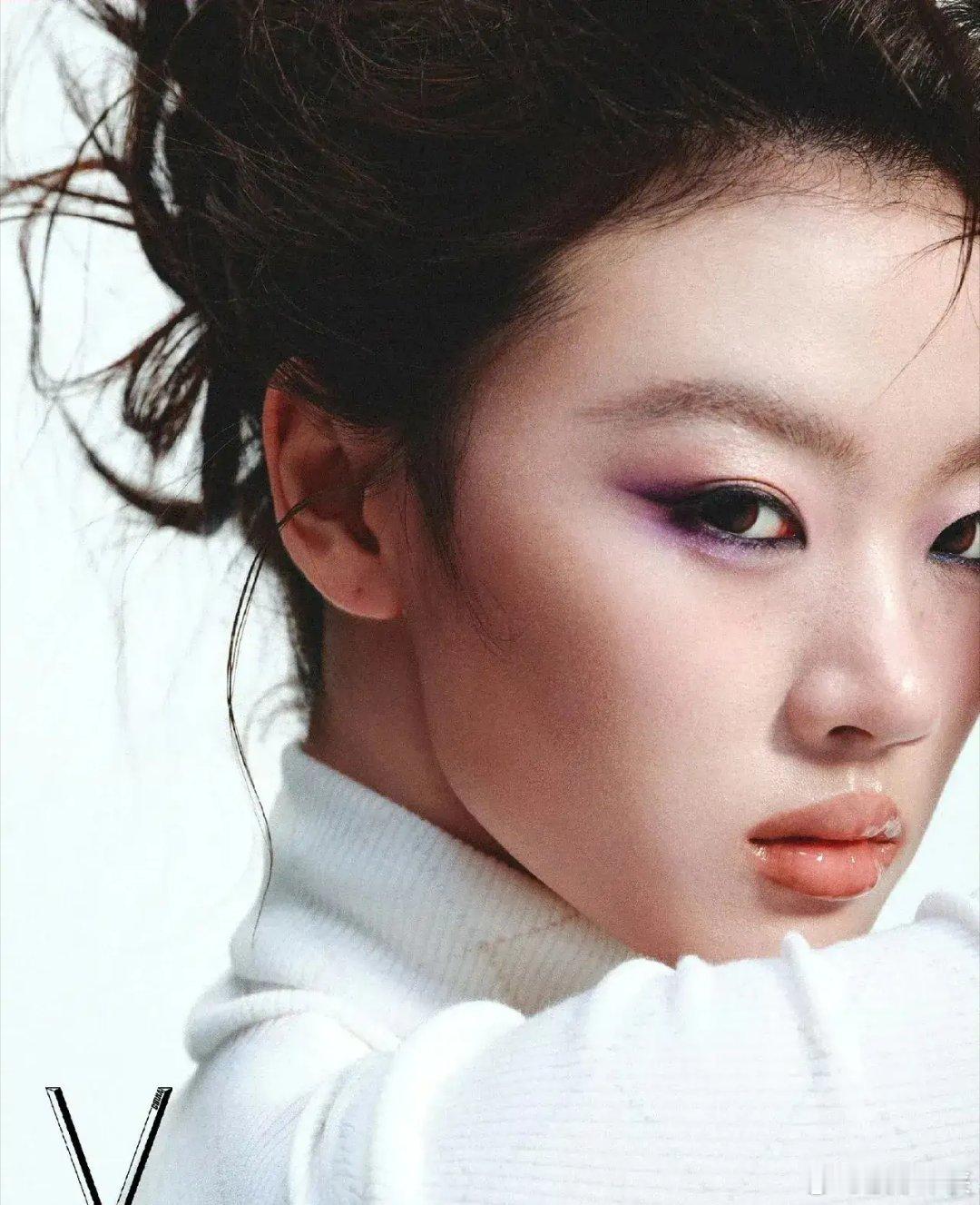 如今,她梳起高颅顶丸子头,化着紫调烟熏妆,眼神里多了几分冷艳和疏离,整个人透着一股强烈的欧美范。