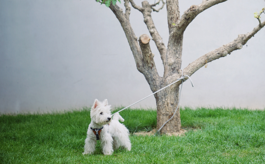 ▲资料图:宠物狗在树下。新京报记者薛珺摄