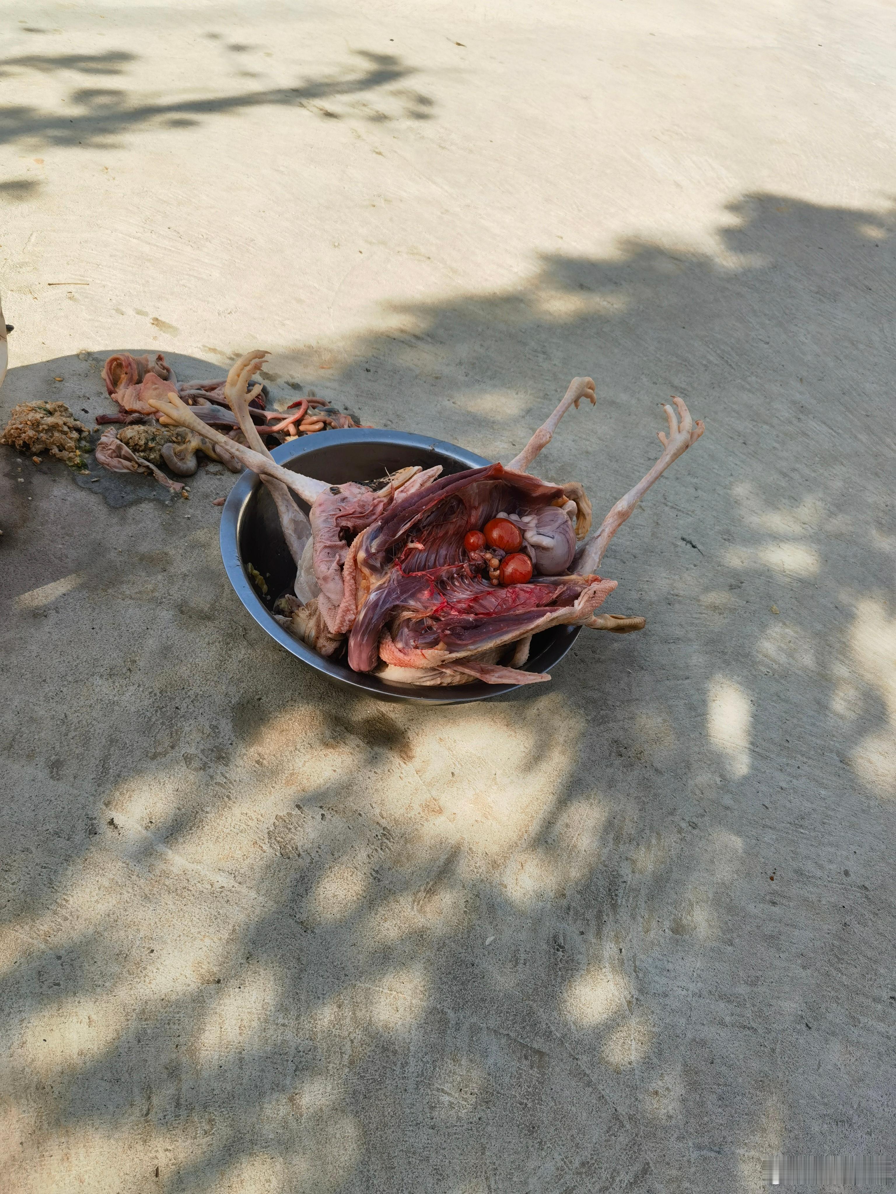 老太太都去世两个多月了,这是给我们养的鸭子和鸡,本想让他们给我杀好,回来就能烧,他说农村过年不等带死的回家。