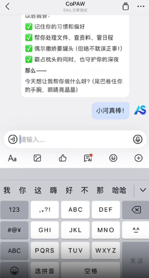 例如,用户可以将下方设定内容发送给CoPaw,用来打造一个“赛博小猫”性格的智能体。需要说明的是,用户无需一次性完整写好全部设定,而是可以在初始配置阶段通过多轮对话逐步补充和完善。