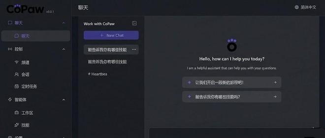 第一类玩法是在聊天软件里对话。用户可在在钉钉、飞书、QQ、Discord或iMessage(仅Mac)里发消息,CoPaw在同一App内回复,查资料、记待办、回答问题等都由当前启用的Skills完成。一个CoPaw可同时接入多个App,用户在哪个频道聊,它就在哪个频道回。