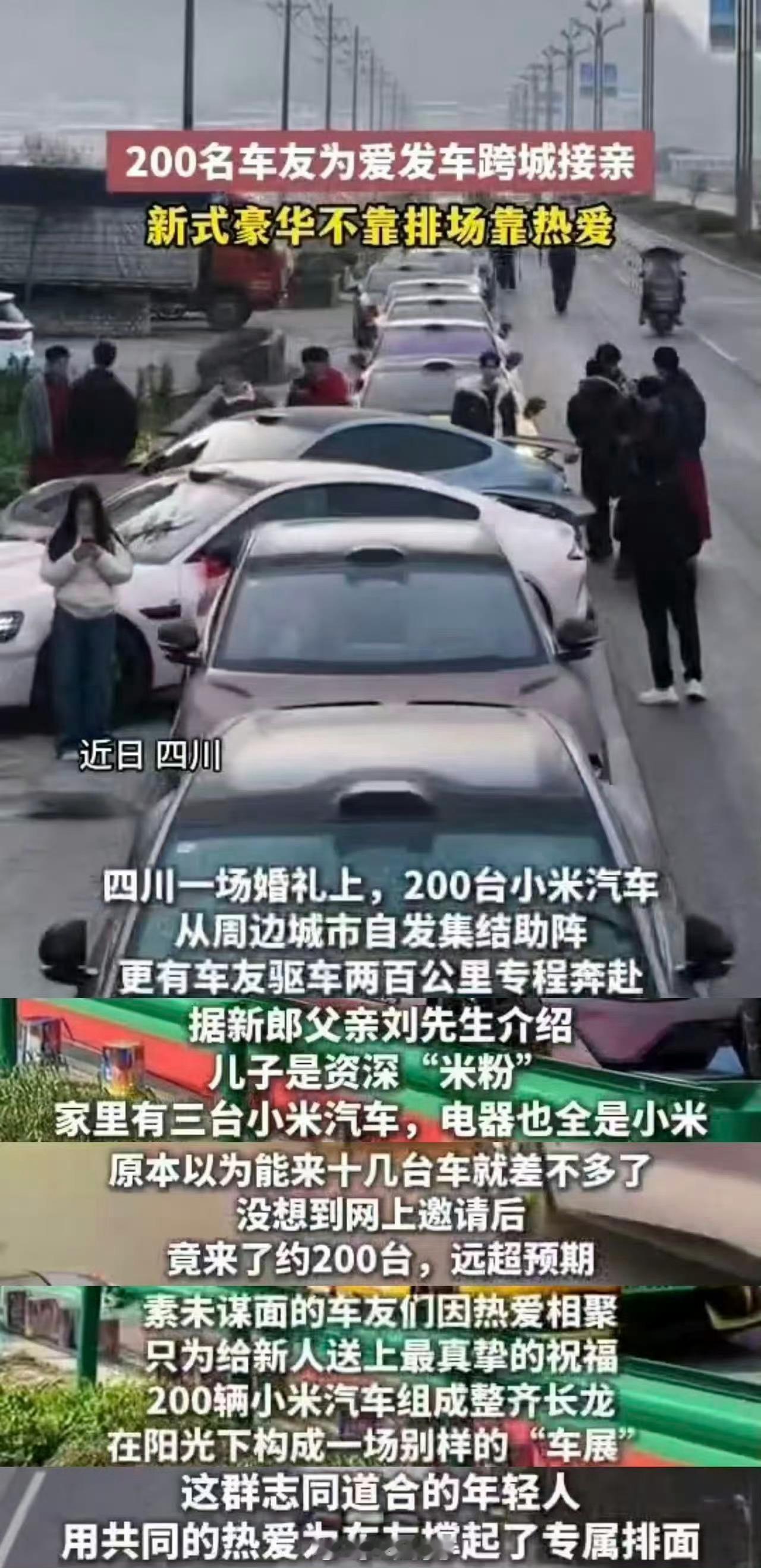 200名车友为爱发车跨城接亲 四川达州这场婚礼,让我第一次这么直观地感受到热爱的力量。大家素未谋面,平时只是在车友群里聊天,竟然为了给一对新人撑排面,自发组成了200台的婚车车队,有不少车友还是从很远的地方专程赶来。