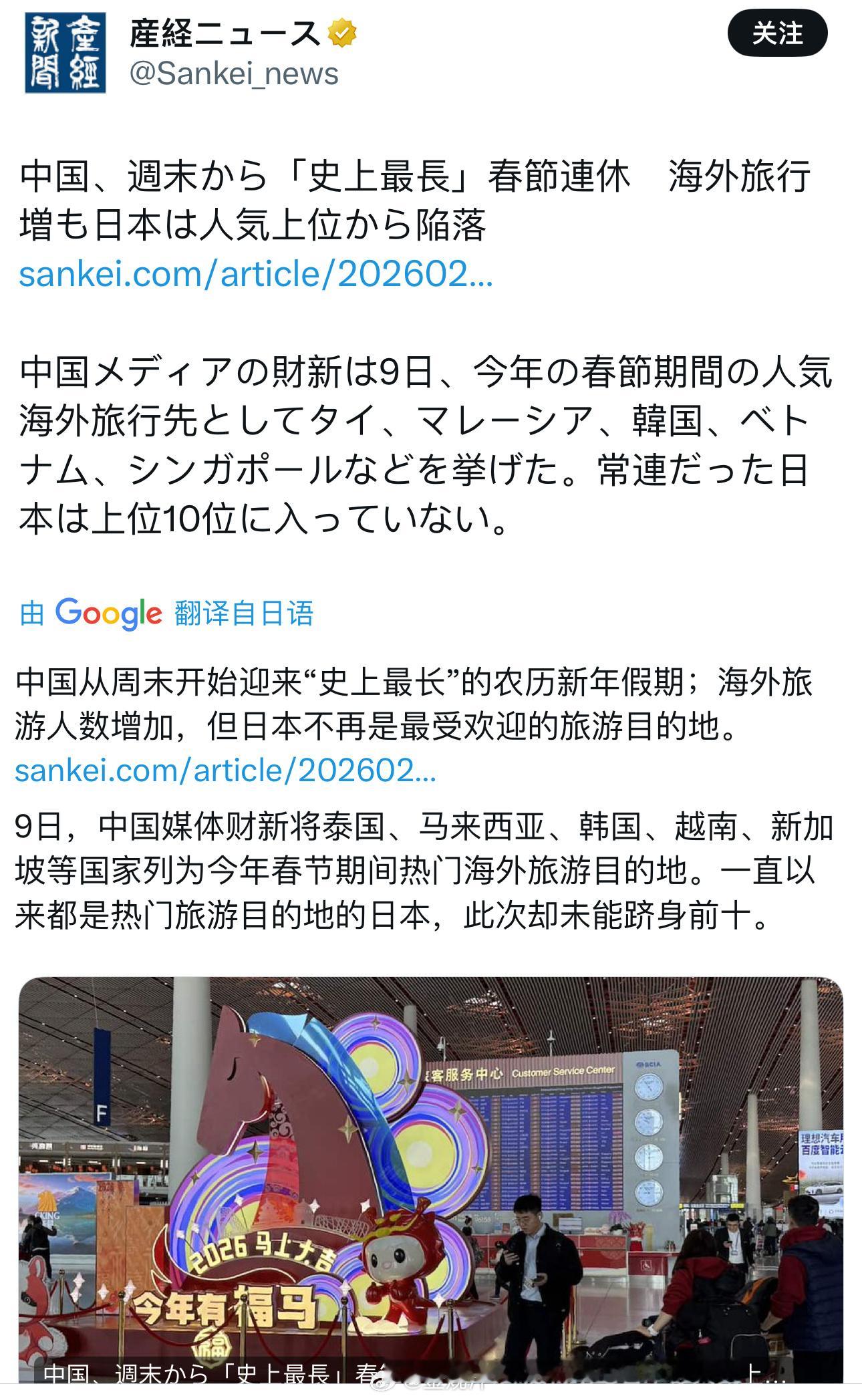 说财新做了个调查,今年春节假期,日本跌出“中国游客旅游目的地”前十名。大概收集了一下评论区里日本人的看法。