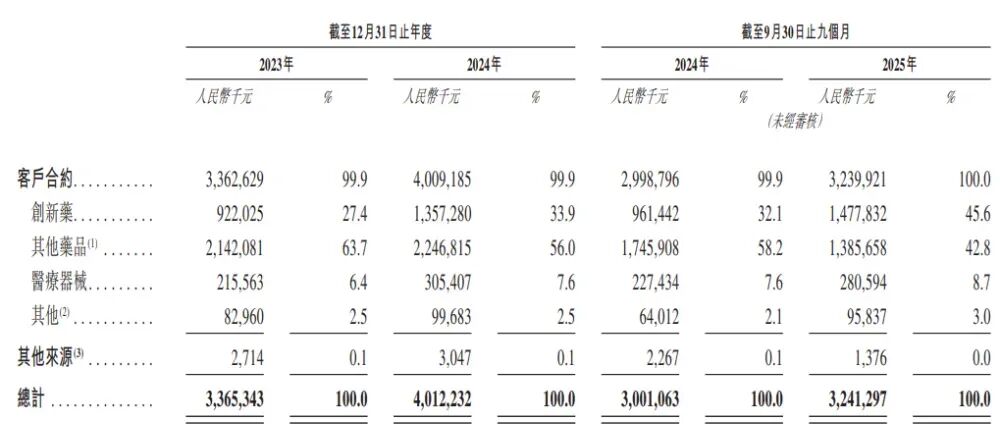 公司主要通过与客户的合约产生收入,其主要包括销售创新药、其他药品及医疗器械的收入。