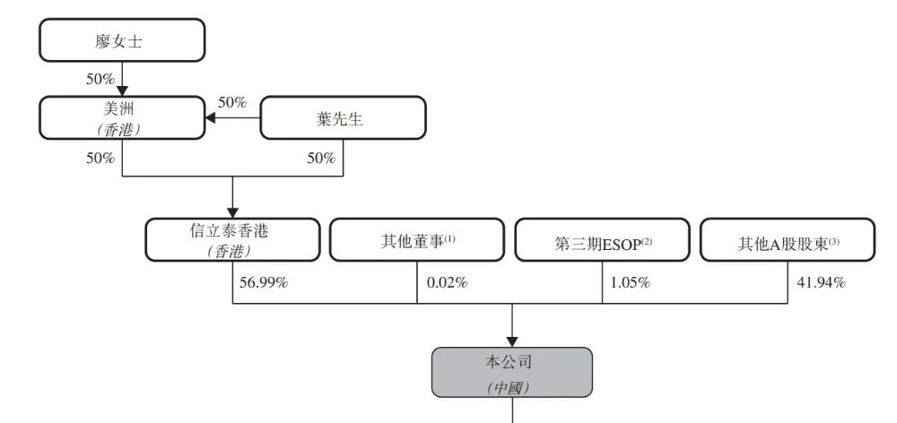 信立泰香港持股约56.99%,信立泰香港由美洲(香港)及葉澄海先生各持股50%,而美洲(香港)則由葉澄海先生及其配偶廖清清女士各自持股约50%;