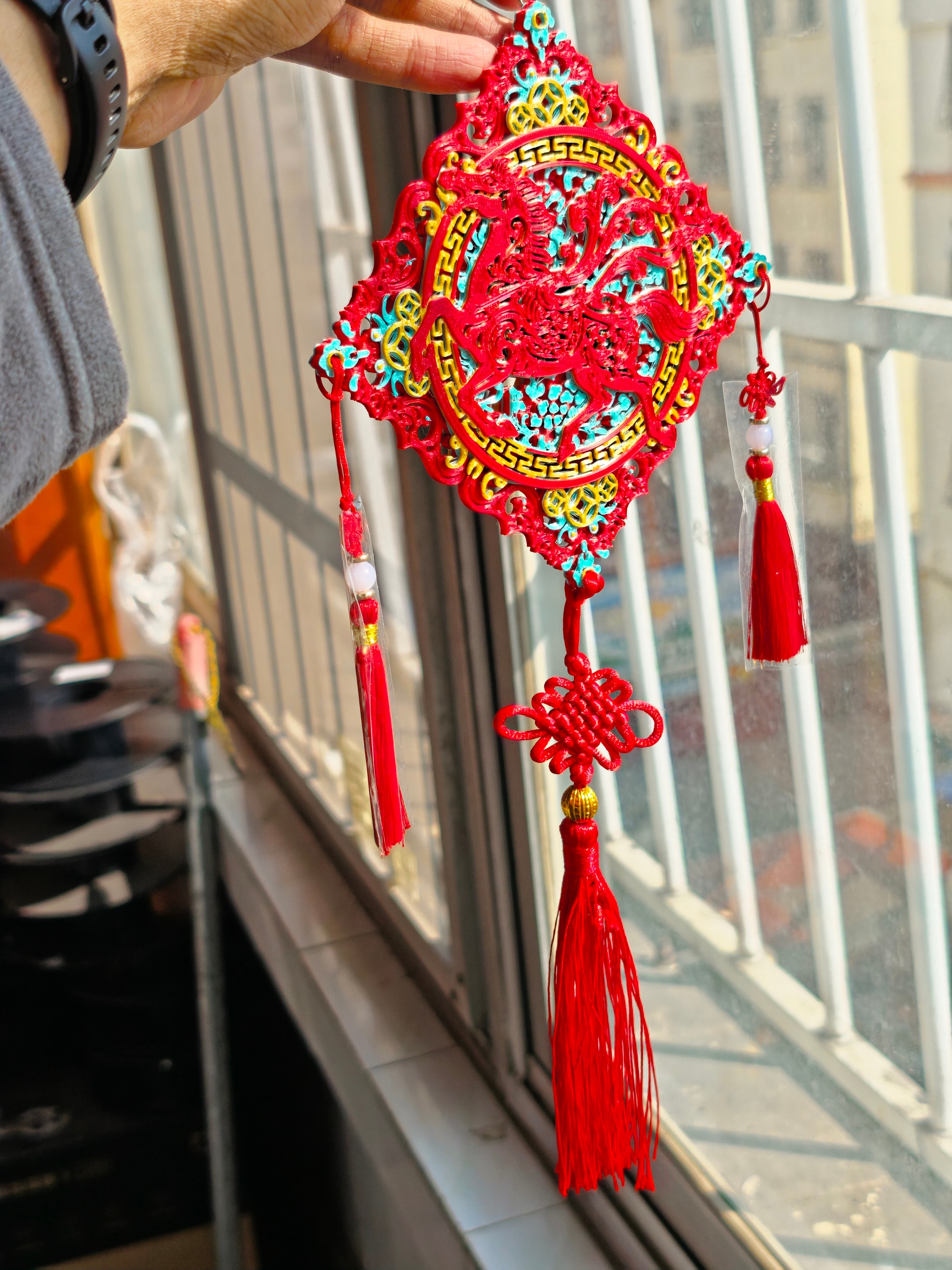 最后3d打印了一个双面的马到成功,给亲戚孩子,今年复读的。多余的流苏就都给他挂上了。