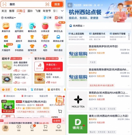 据悉,这是淘宝闪购联合旅途易购在年前联合推出的“高铁站点餐”服务。旅客无论在哪,只需打开淘宝APP或支付宝APP,并将淘宝闪购的收货地址选择为特定站点,即可在进入“高铁站点餐”频道。