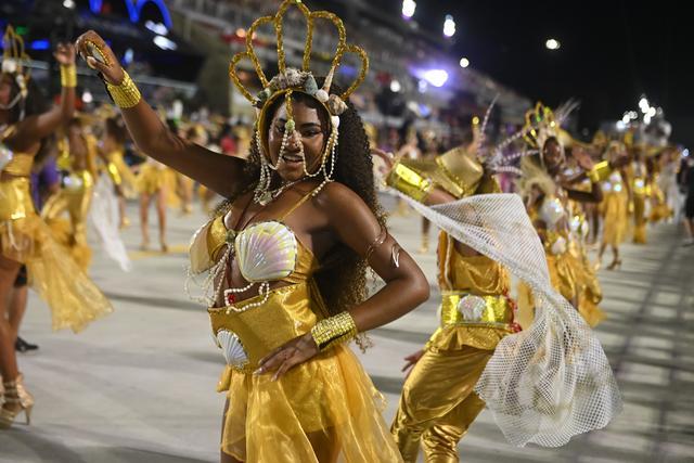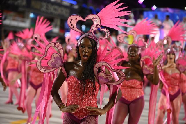 2月13日,桑巴舞者在巴西里约热内卢举行的2026年狂欢节游行中表演。新华社发(卢西奥·塔沃拉摄)