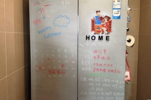 为了在春运期间兼顾好工作和生活,张雅淳想了个办法,她在自家的冰箱上贴了一张特殊的“家庭运行图”。彩色的磁贴代表着不同的班次,上面清晰地标注着两个人的出退勤时间,甚至还有买菜、做饭的计划。