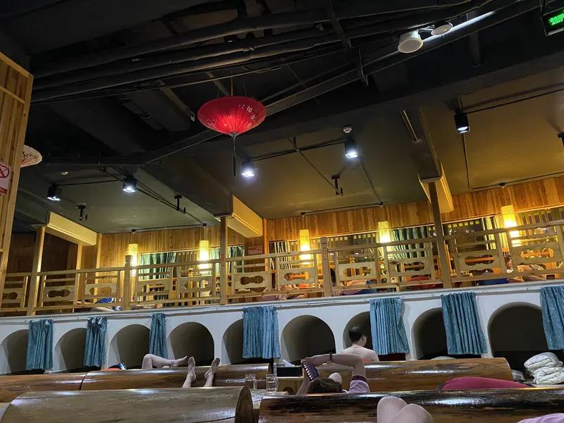东北洗浴又上强度了 东北洗浴又双叒叕上强度了!最近沈阳多家汤泉推出暴风雨主题沉浸式水疗,声光电模拟出电闪雷鸣,泡池里“狂风暴雨”,网友都说像“渡劫”。场馆用专业设备还原雷雨音效、光影和水雾,拍照超容易出片,不少人专程来打卡,直呼刺激又解压。 现在的东北洗浴中心早已升级,是集温泉、搓澡、自助、娱乐等为一体的“成人迪士尼”。高端的还能无限畅吃帝王蟹、车厘子,水果饮品区有依云、星巴克。专业搓澡力度到位,服务细节也很贴心。从传统到网红玩法,东北洗浴把休闲娱乐玩得明明白白,成了冬季文旅新流量密码!