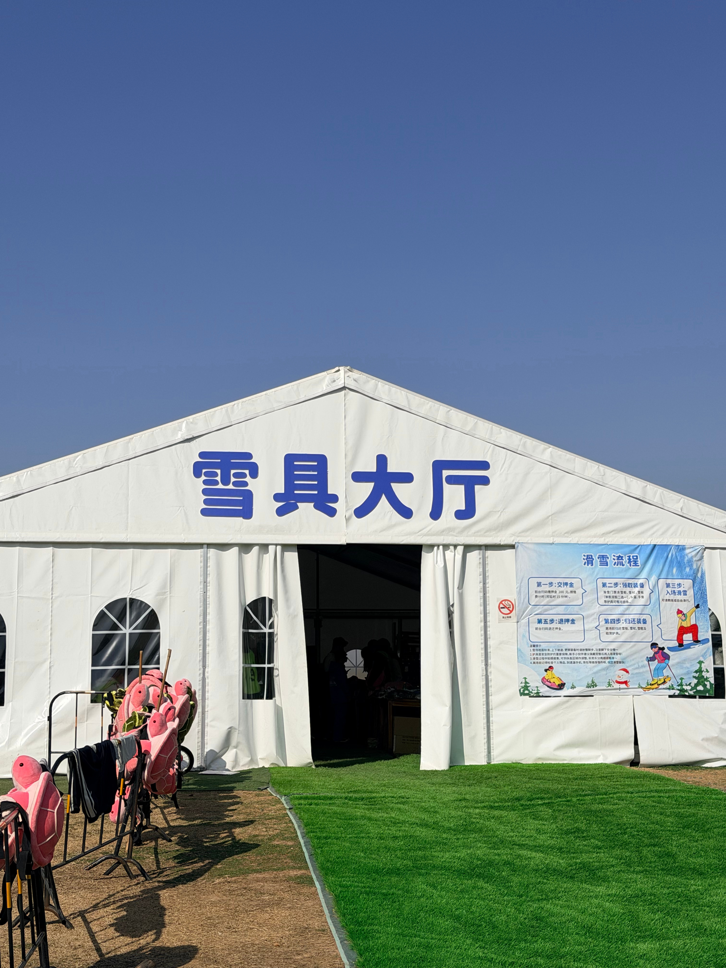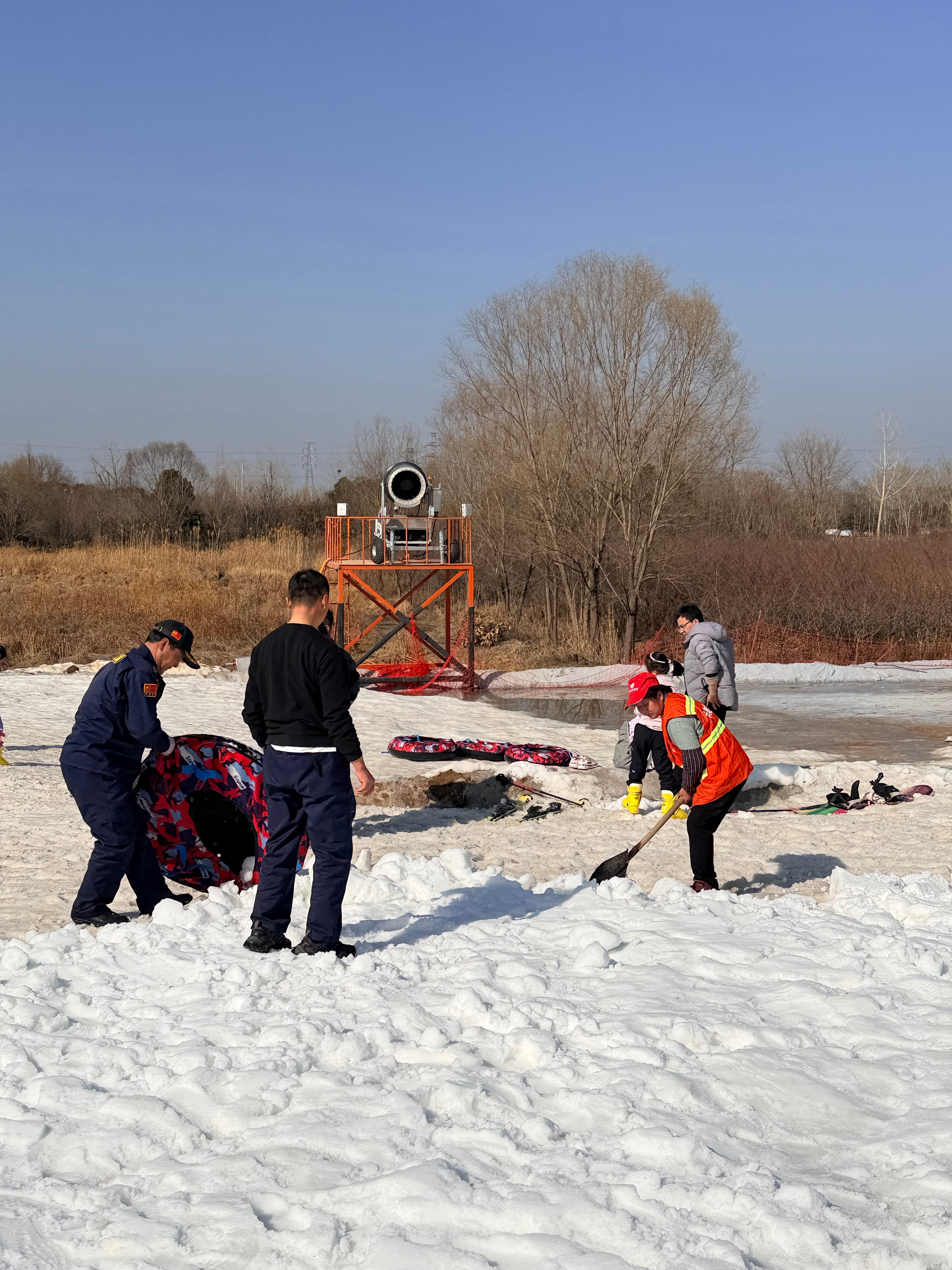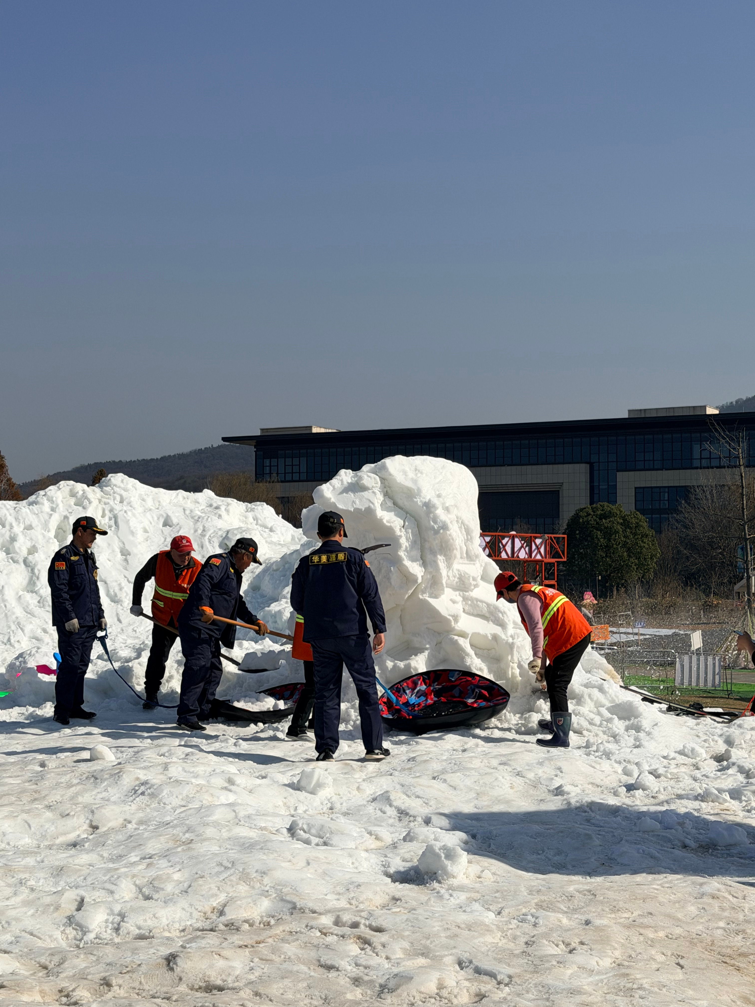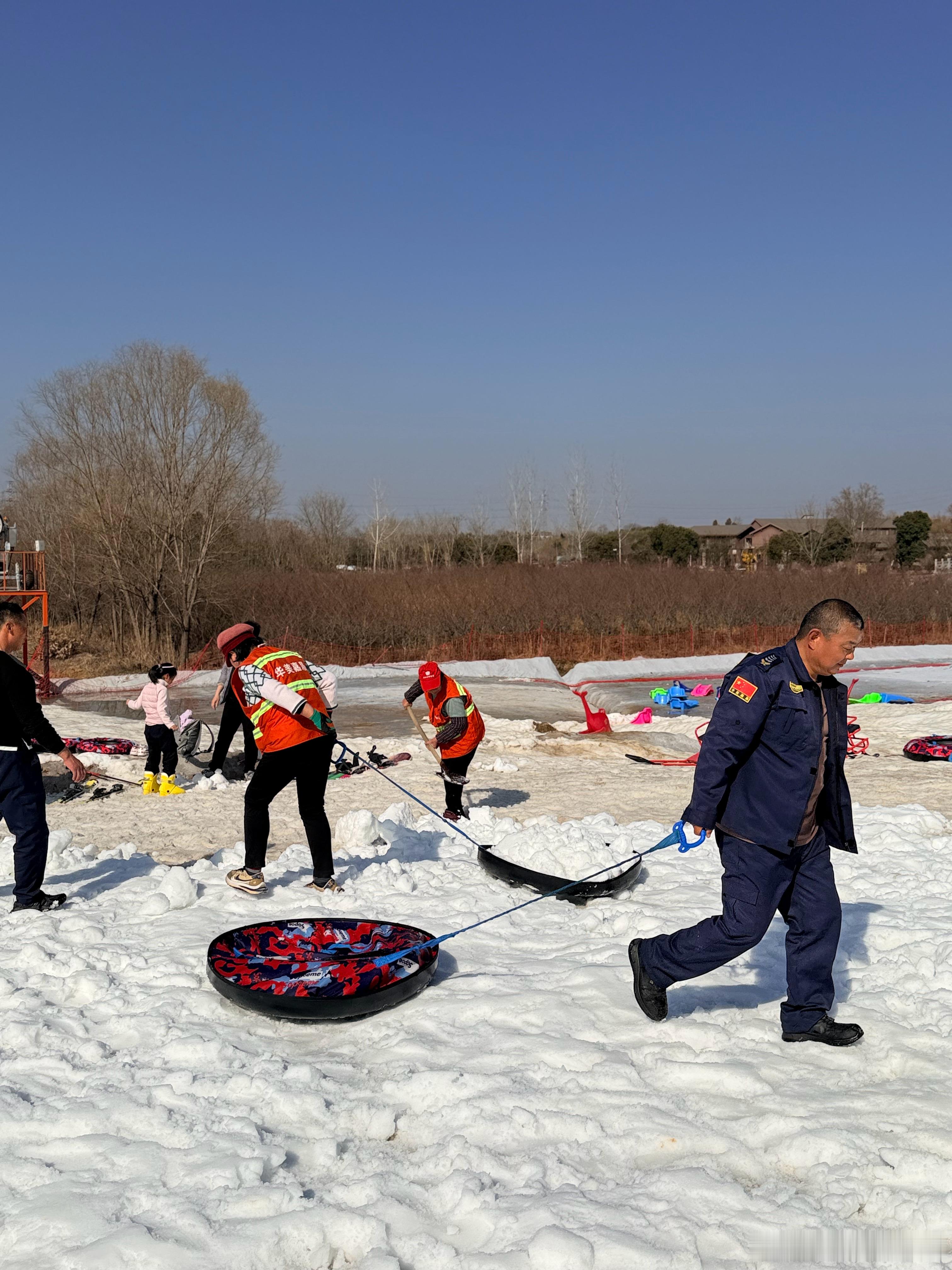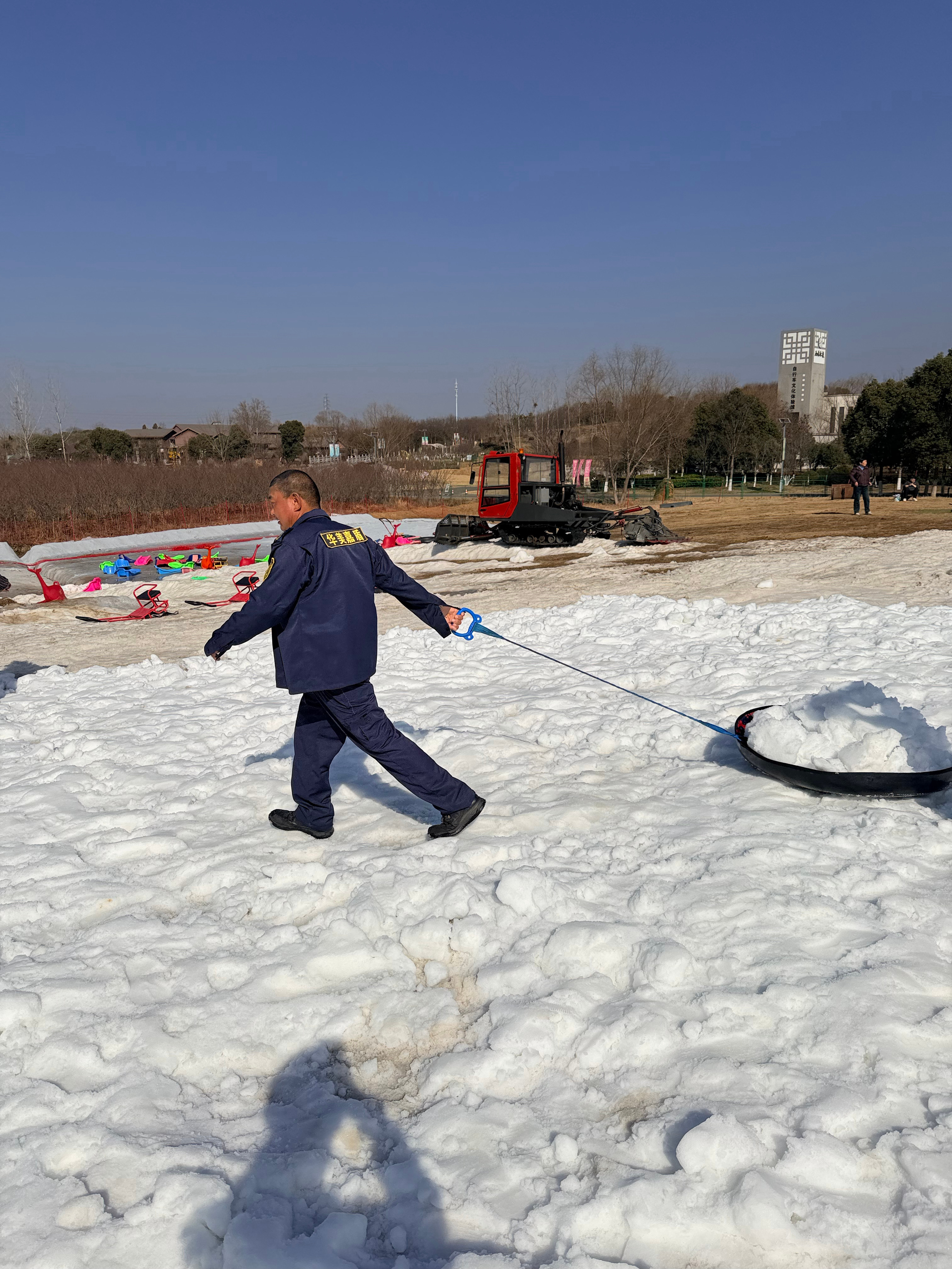 最搞笑的是。他们是靠人力把雪运上坡,然后用铲子铺雪道补雪的。保安大叔、保洁阿姨都在铲雪、用轮胎运雪、用铲子补雪、然后用铲子压雪。