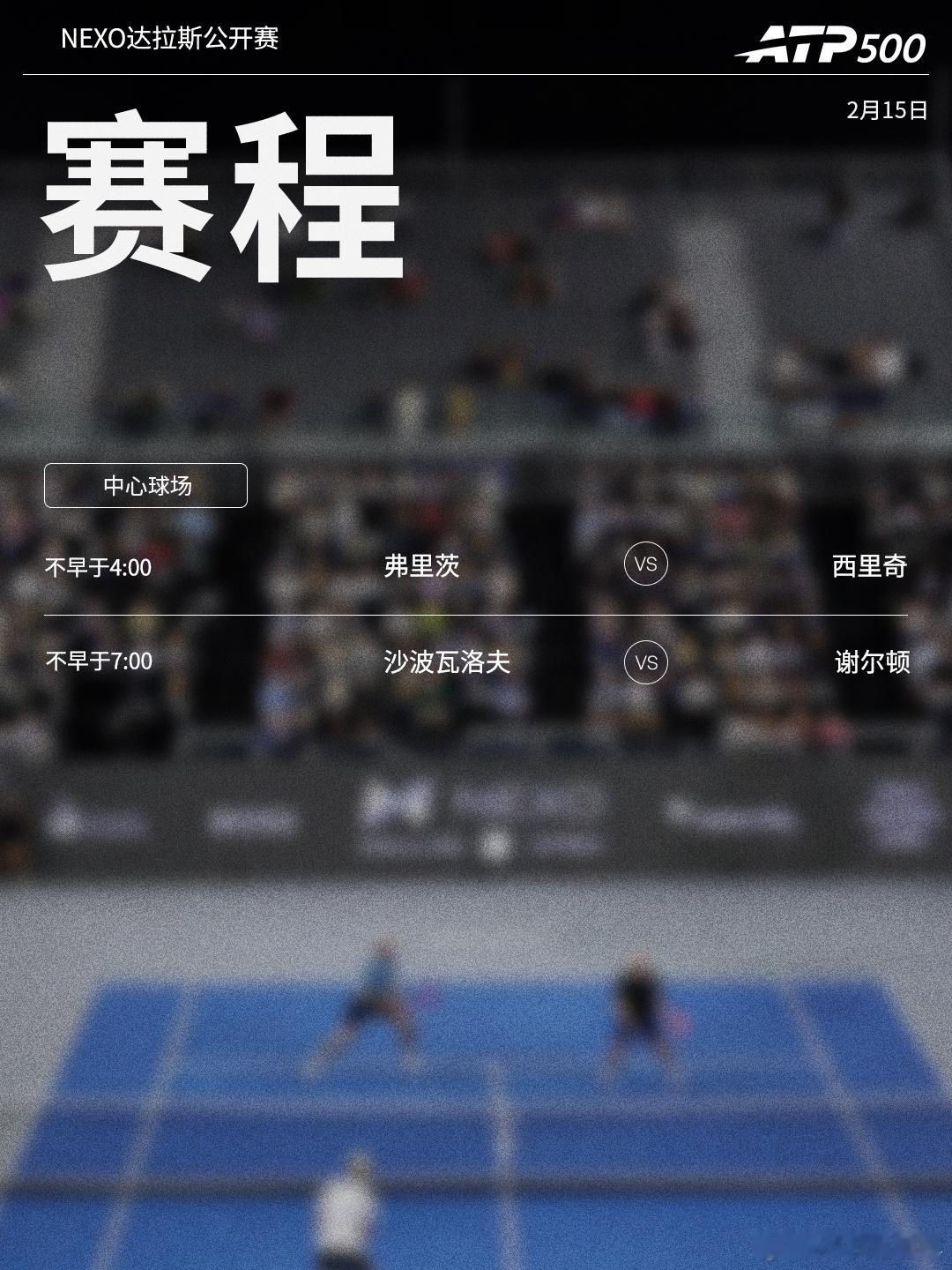 ⭕️ ATP500Nexo达拉斯公开赛📍达拉斯🎾弗里茨迎战前美网冠军西里奇,沙波瓦洛夫激战谢尔顿。