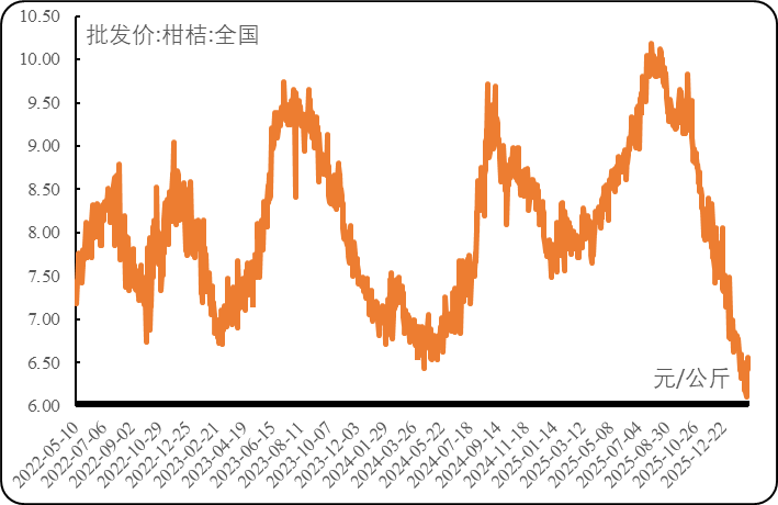 图2.全国柑桔销地批发价格走势图