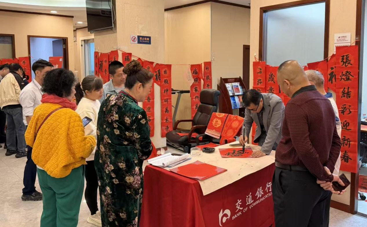 走进交行海南省分行打造的“银龄”友好型网点,浓郁的翰墨香气扑面而来。2026年1月1日至2月11日,连续18场新春送福雅集系列活动在这里温情开展。银发客户们执笔挥毫,在红纸上写下对新年的美好祝愿,品茗交流间尽享传统年俗文化的魅力。