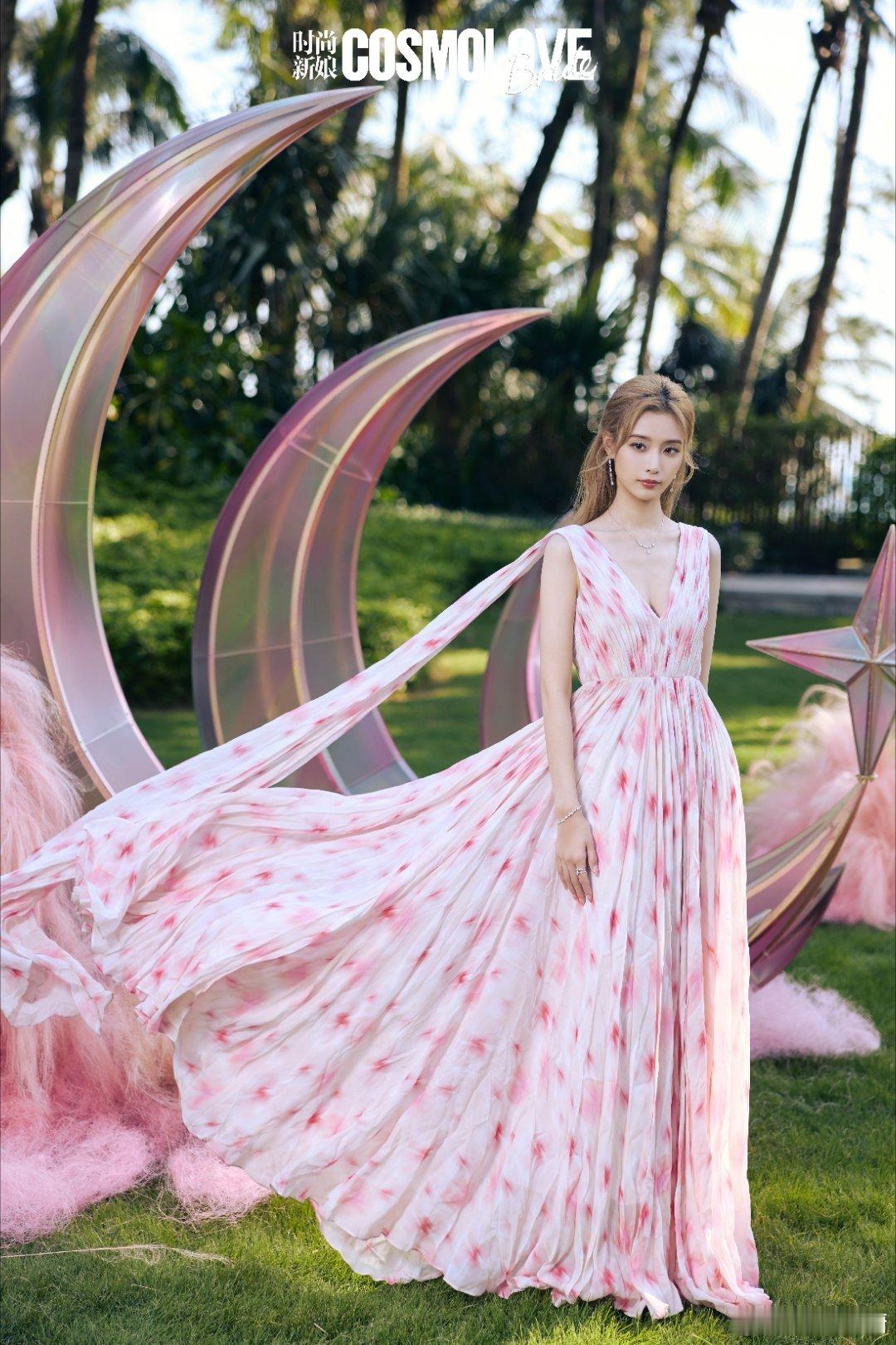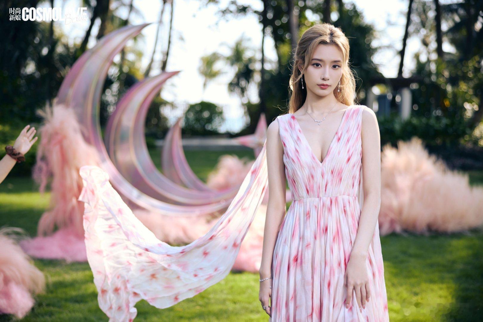 徐艺洋蓝裙缀星钻,似把银河揉进褶皱里,纱袖拂过热带叶影,光与影在裙摆跳圆舞曲,粉裙扬在月牙装置旁,花瓣纹随步履流淌,像将春日云霞裁成了裙裾。徐艺洋春日多巴胺大片徐艺洋情人节封面