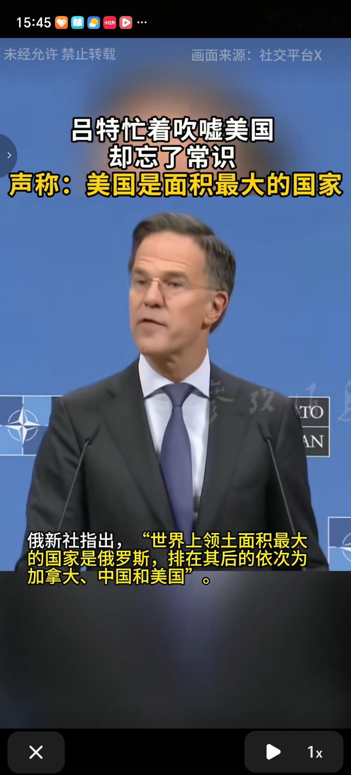 北约秘书长吕特被采访时直言:“我们应该知道,美国是世界上最大的国家”。并强调了其军事和经济实力。 俄新社等媒体迅速指出了这一常识性错误。俄新社指出了:“世界上领土面积最大的国家是俄罗斯,排在其后面的依次为加拿大、中国和美国”。