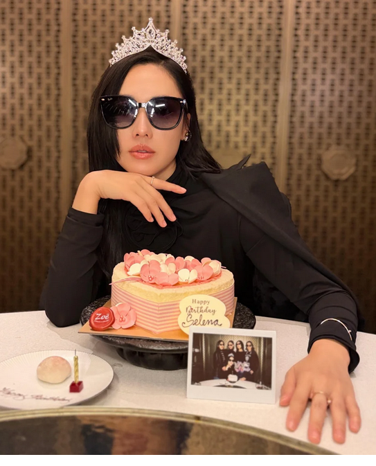 李施嬅晒出了她庆贺生日的照片 还晒出了“胡说八道会”姐妹团为她庆贺生日的合照。“