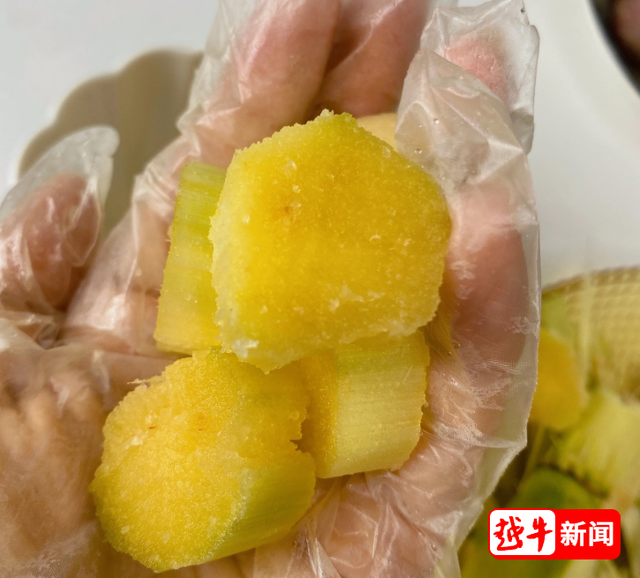 网友晒出“黄金甘蔗”果肉,色泽金黄。