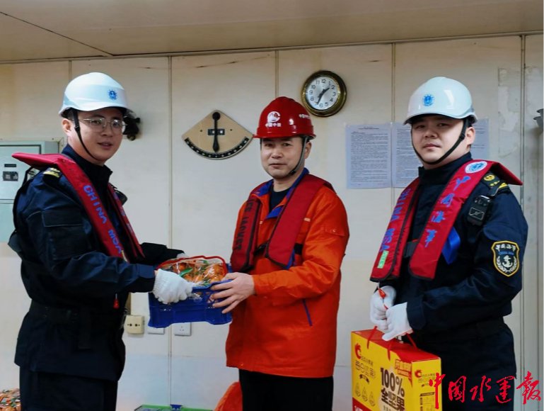 “大家辛苦了!给你们提前拜年!”海事工作人员走进驾驶台、机舱,给船上工作人员送去了新春问候。除了祝福,他们还为坚守岗位的船员们拍摄了工作照和集体照,用镜头记录下他们在岗位上的瞬间。船员们笑着说,要第一时间把照片发给老家的亲人。
