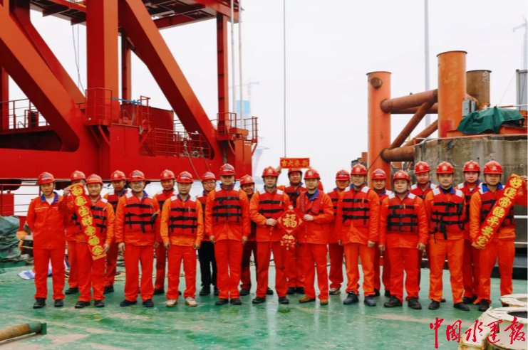 大年二十七,“天一号”锚泊在铁路桥施工现场。根据施工安排,这个春节船上共有21名船员无法回家过年。这天,嘉兴海事局海盐海事处的工作人员登上这艘熟悉的大型特种作业船舶,为船员们送去新春的慰问。