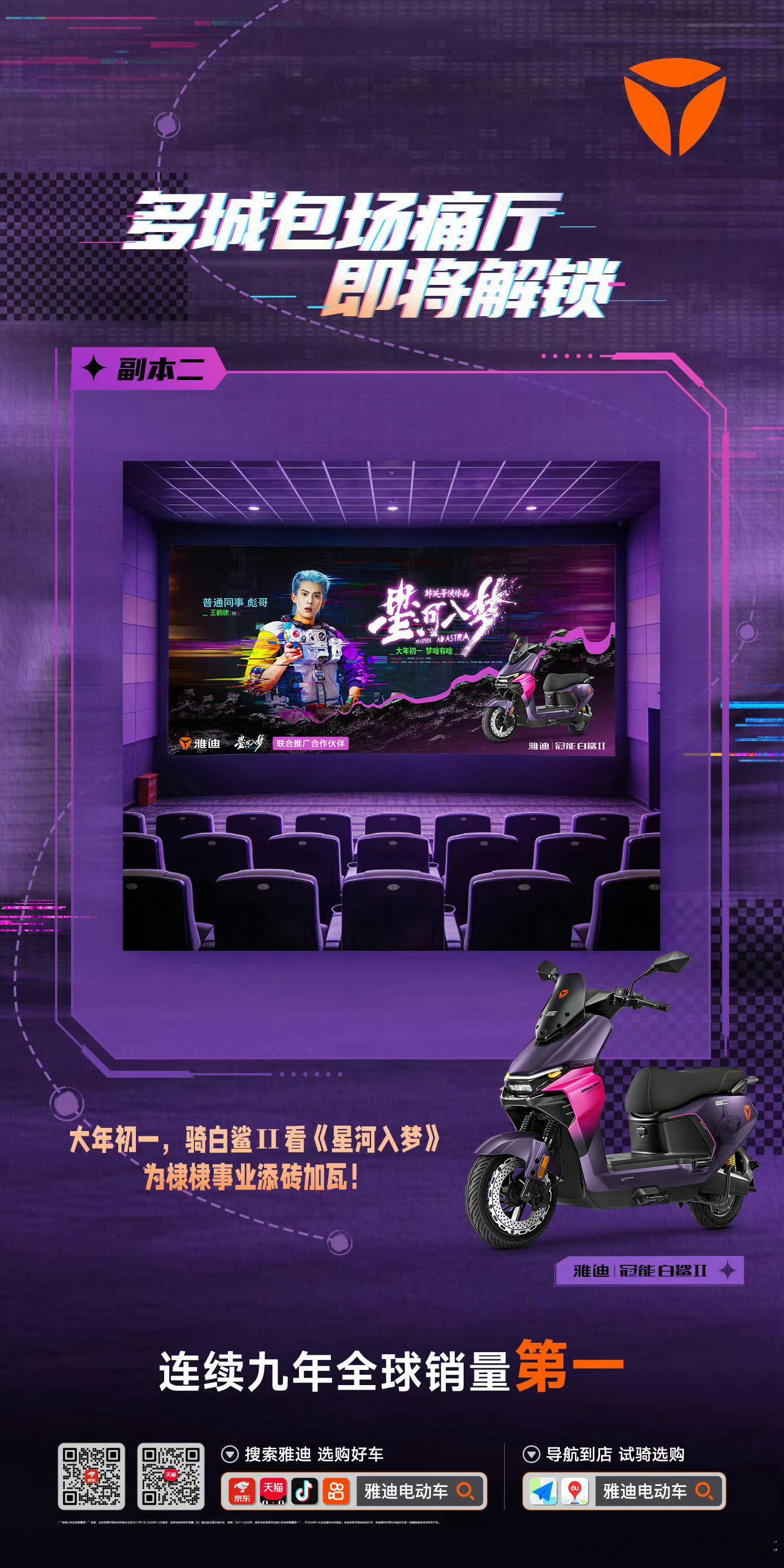 雅迪给王鹤棣星河入梦安排了全国高铁C位大屏和线下多城包场痛厅!