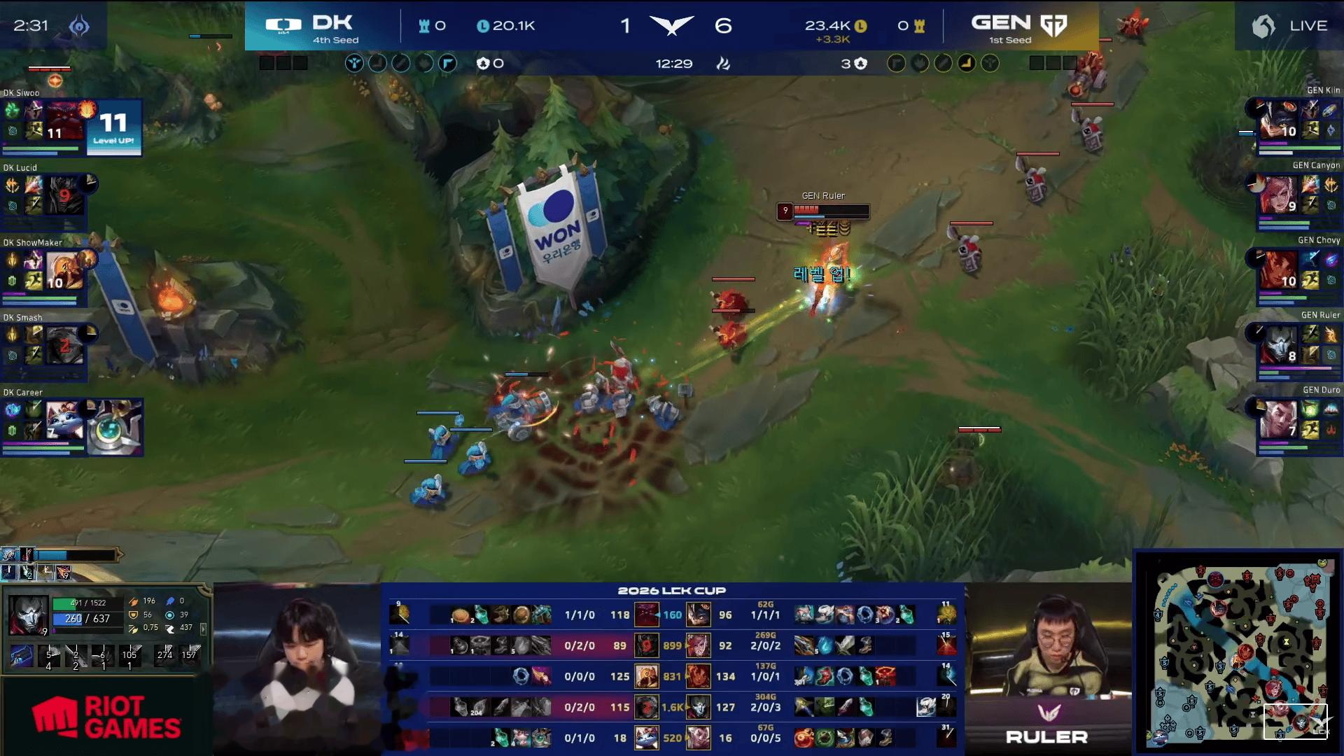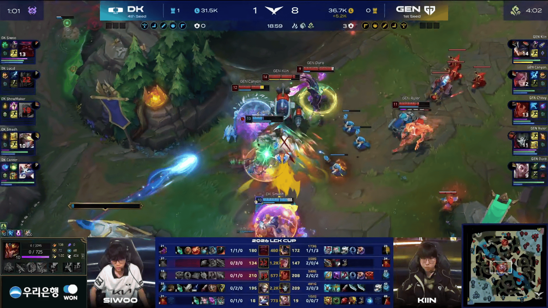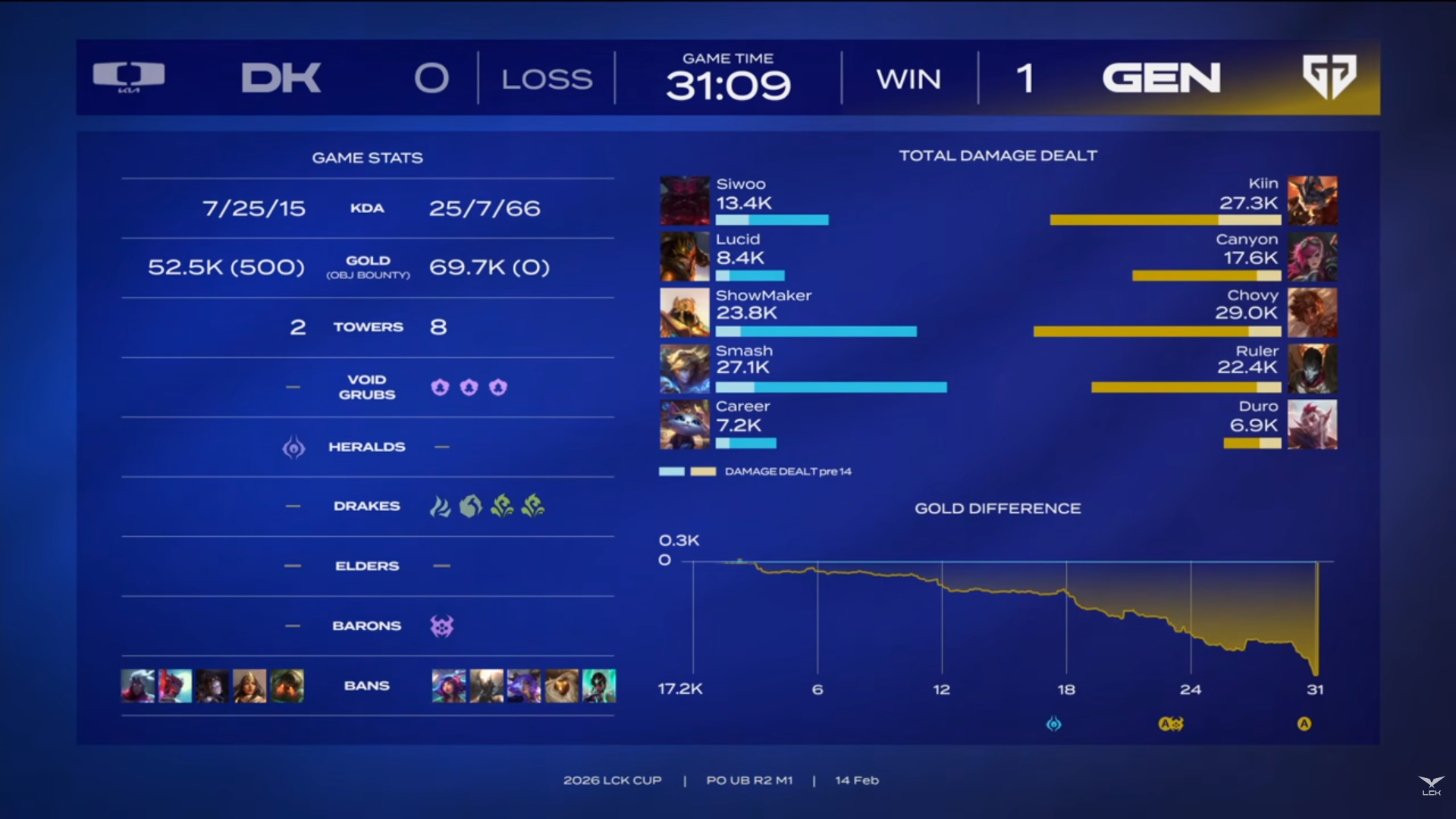 虎扑02月14日讯[GAME1]DK蓝色方、GEN红色方