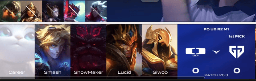 DK选用:Siwoo奥恩、Lucid皇子、ShowMaker沙皇、Smash伊泽瑞尔、Career悠米