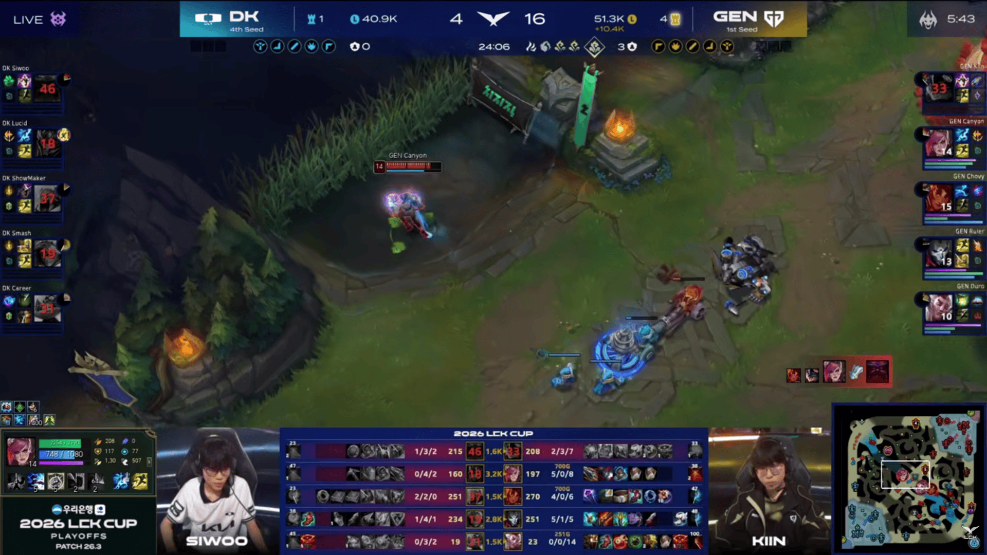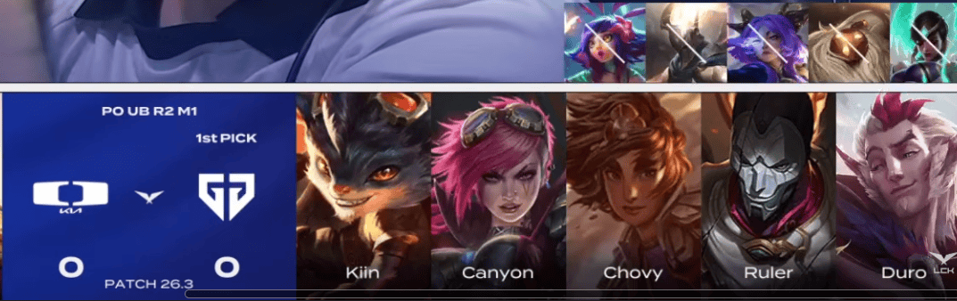 GEN选用:Kiin兰博、Canyon蔚、Chovy岩雀、Ruler烬、Duro洛