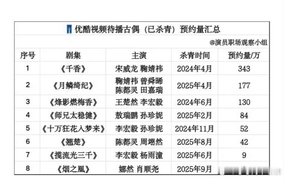 各平台古偶预约量来看看有你想看的吗?