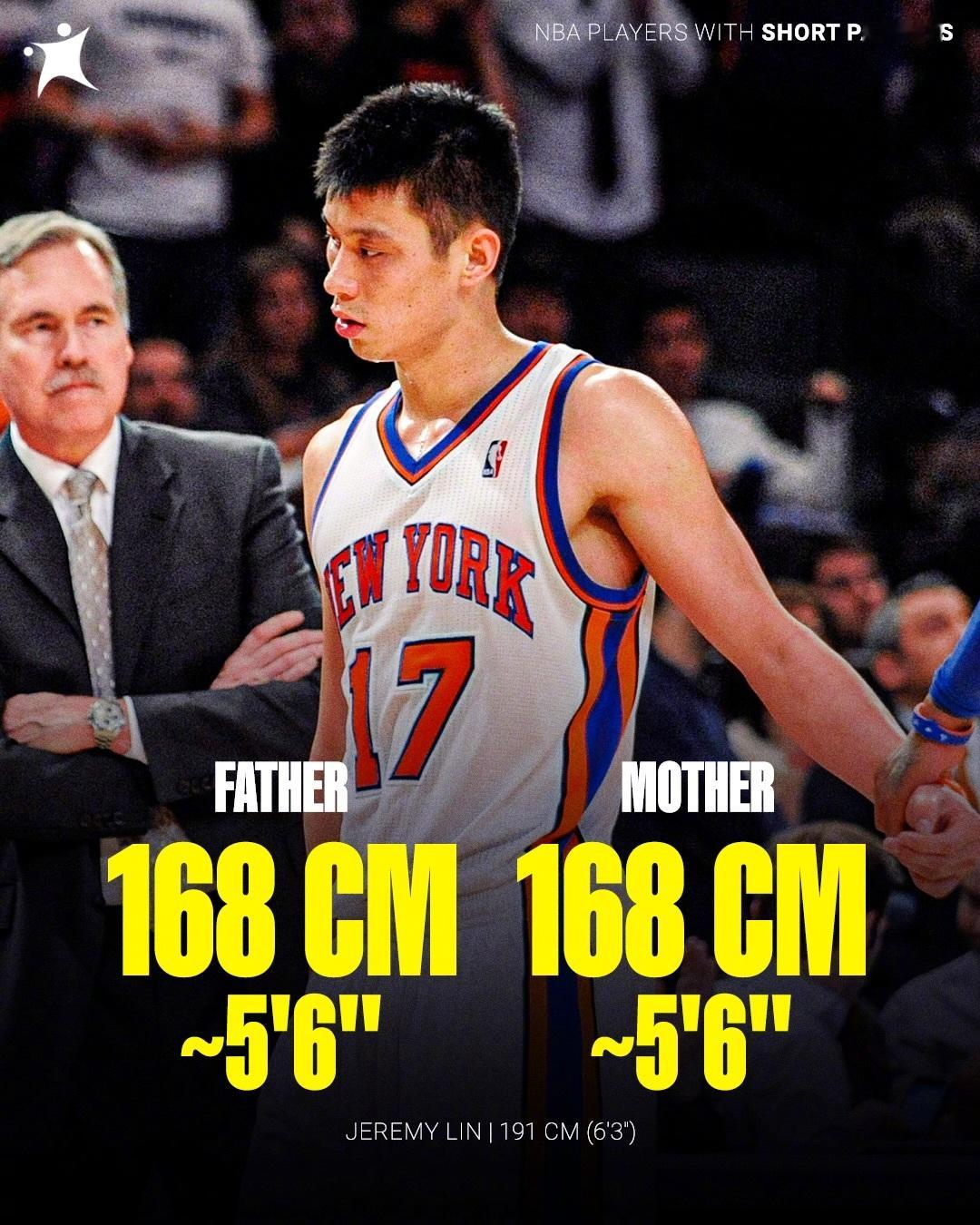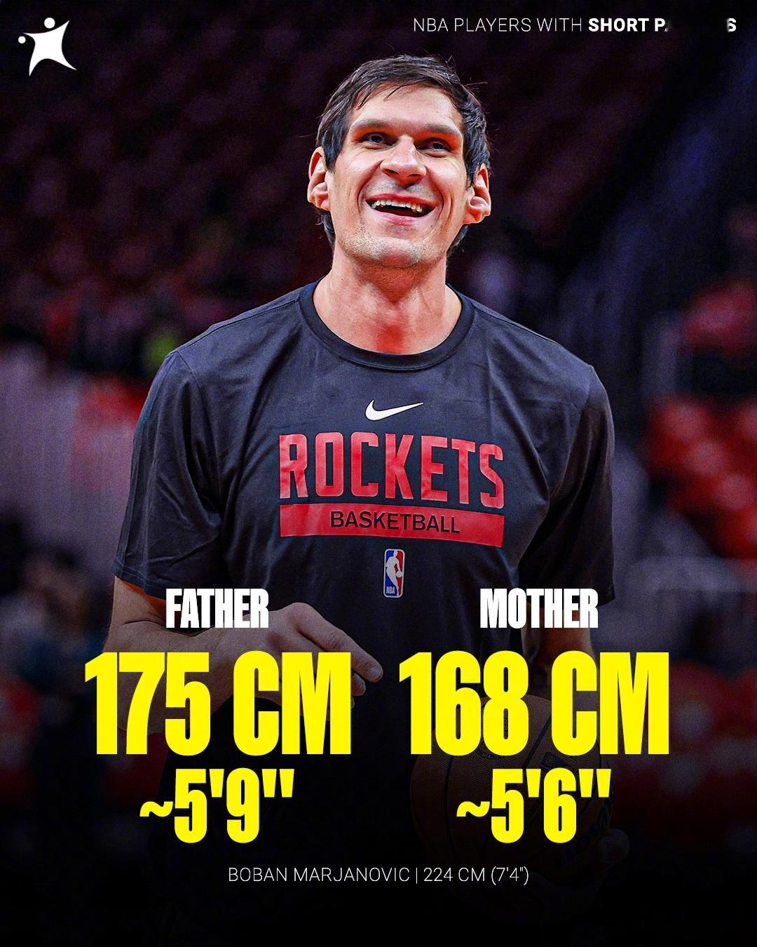 那些身高比父母高出不少的球员!博班的父母身高没超过175、塔克父亲也才183、张伯伦的父母也是175上下。