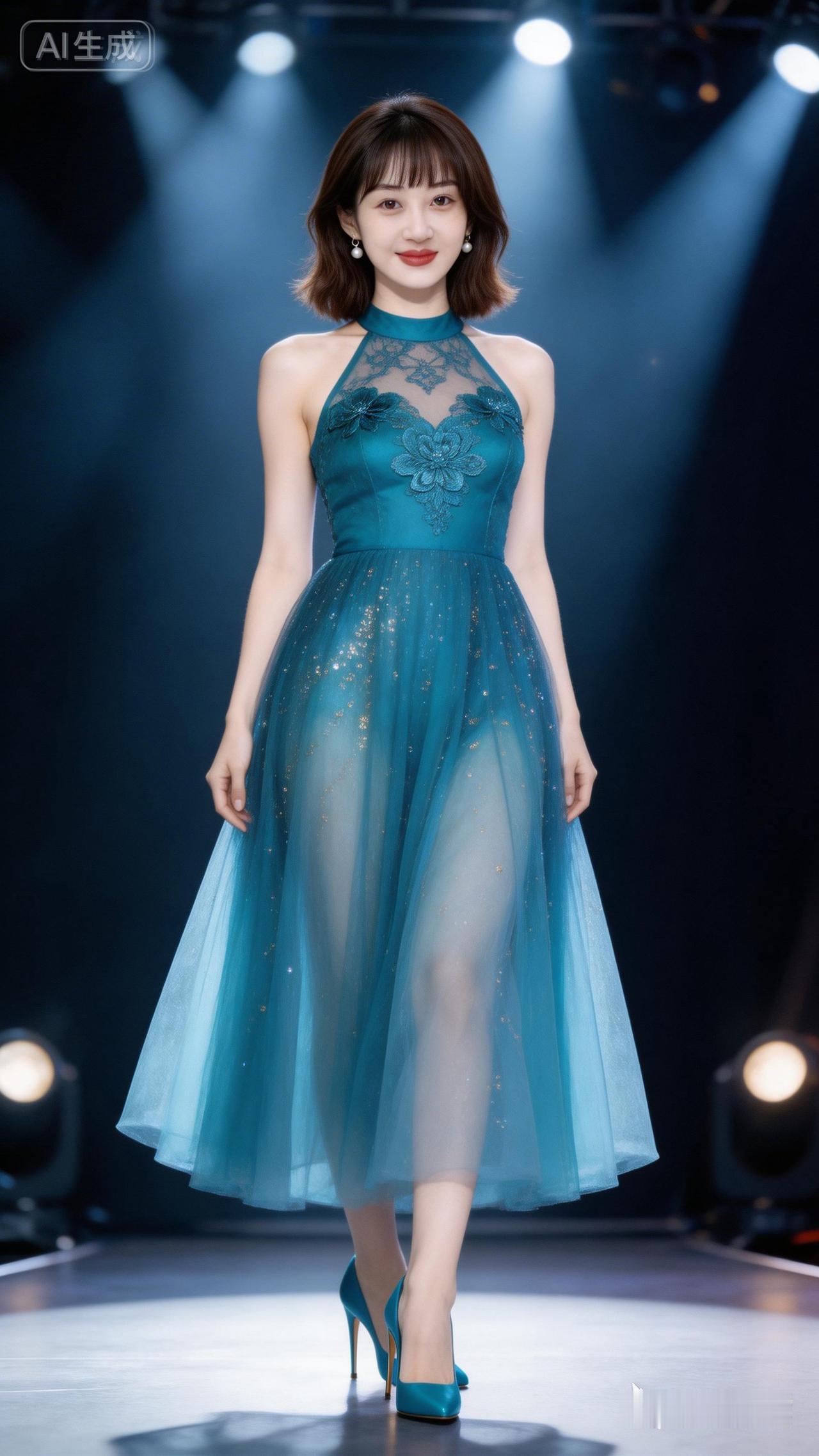 梦幻蓝裙,闪耀舞台,优雅动人!