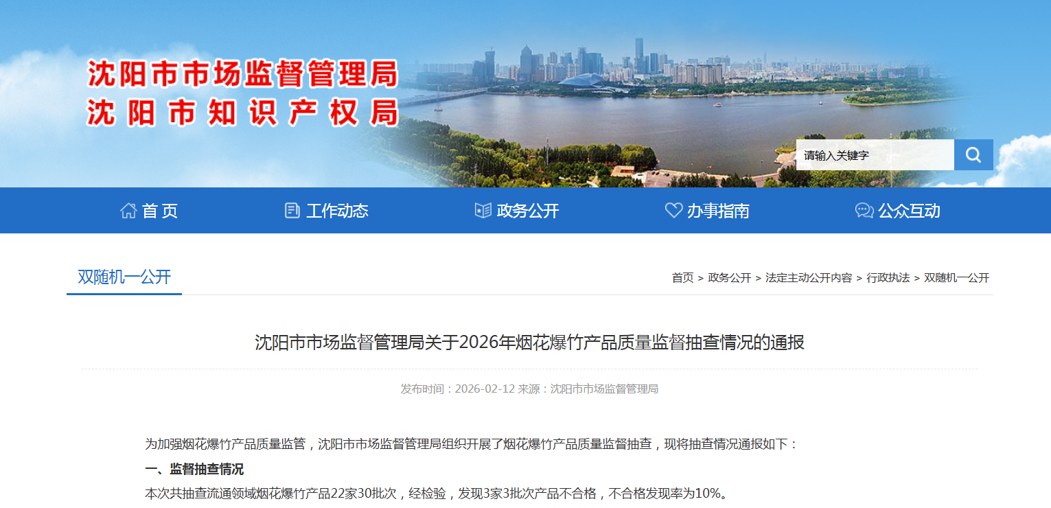 为加强烟花爆竹产品质量监管,沈阳市市场监督管理局组织开展了烟花爆竹产品质量监督抽查,现将抽查情况通报如下: