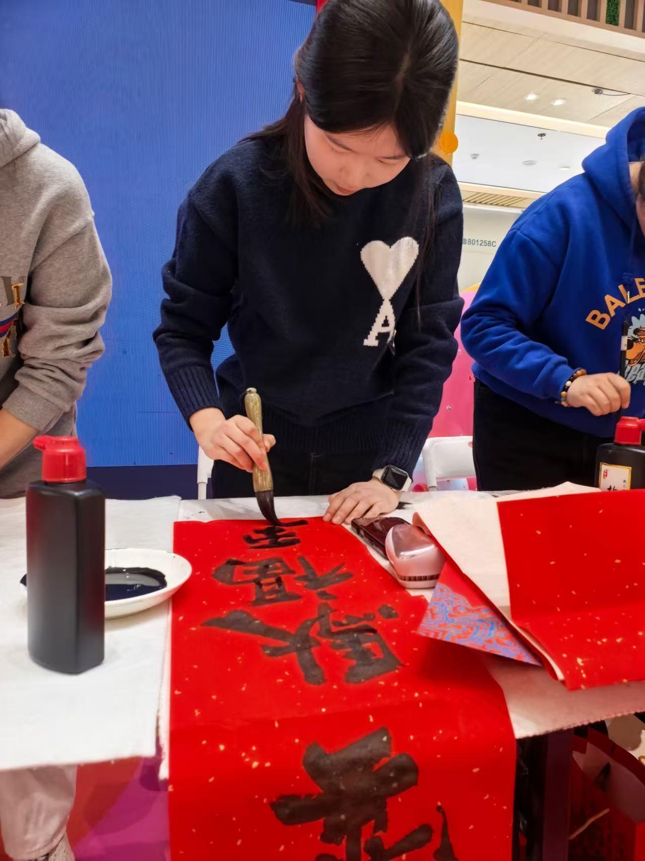 秦岭笑谈青春三下乡镜头下的三下乡三下乡大学生寒假社会实践 2月6日,曲阜师范大学美术与书法学院“云程发轫,履践不辍”社会实践队走进青岛市洪山坡社区,开展“迎新春·写福送福”主题实践活动。活动现场墨香四溢,红纸铺展,队员与社区居民尤其是青少年儿童一起挥毫写“福”,将新春祝福凝于笔端,为社区增添了浓厚的节日氛围。实践队员不仅演示了篆、隶、楷、行等不同字体的“福”字写法,还讲解了“福”字的文化内涵与春节贴福的传统习俗。孩子们在指导下认真临摹,一幅幅充满童趣的“福”字跃然纸上。活动最后,队员将书写好的福字和春联赠送给社区老人和居民,传递温暖祝福。洪山坡社区主任表示:“春节前夕举办这样的活动特别应景。大学生们带来的不仅是书法技艺,更是一份文化温度和青春活力。这些手写的福字比印刷品更有情感厚度,居民们都非常喜欢。”居民刘大爷接过春联感慨道:“看到年轻人这么认真地写书法、传文化,感觉年味更浓了,传统也有了新传承。”实践队员分享道:“在春节前夕能通过自己的专业特长为大家送去祝福,特别有意义。当我们把‘福’字送到老人手中时,他们脸上的笑容让我们觉得一切付出都值得。”红纸墨香间,一个个“福”字承载着新春的期盼,更传递着文化传承的温度。实践队员用笔墨连接起校园与社区,在服务奉献中诠释着“云程发轫,履践不辍”的实践精神,为即将到来的春节绘上了浓墨重彩的青春注脚。