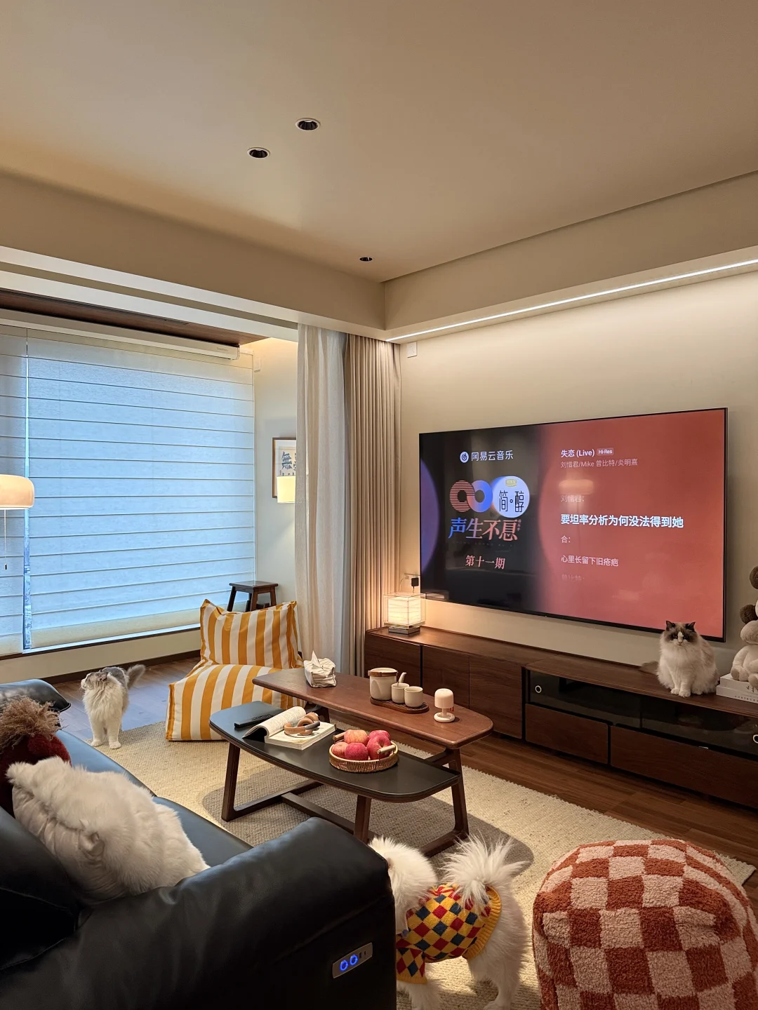 ✅ 客厅无主灯+圆弧吊顶设计