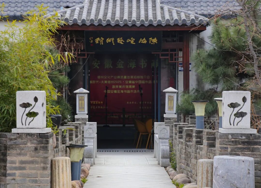 2月6日,带着这份意外与好奇,记者一行跟随导航路线,穿梭于城市街巷,来到了埇桥区金海六路476号。眼前白墙黛瓦、建筑群造型简洁,推开大门便闯入了墨香萦绕的“艺术秘境”。