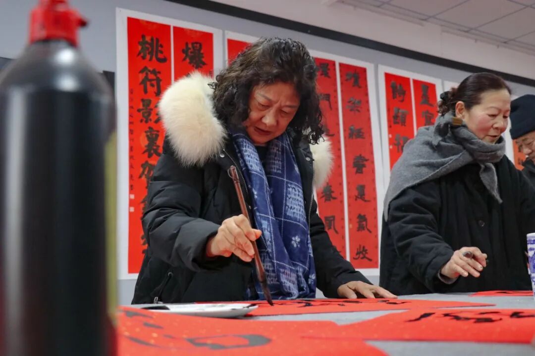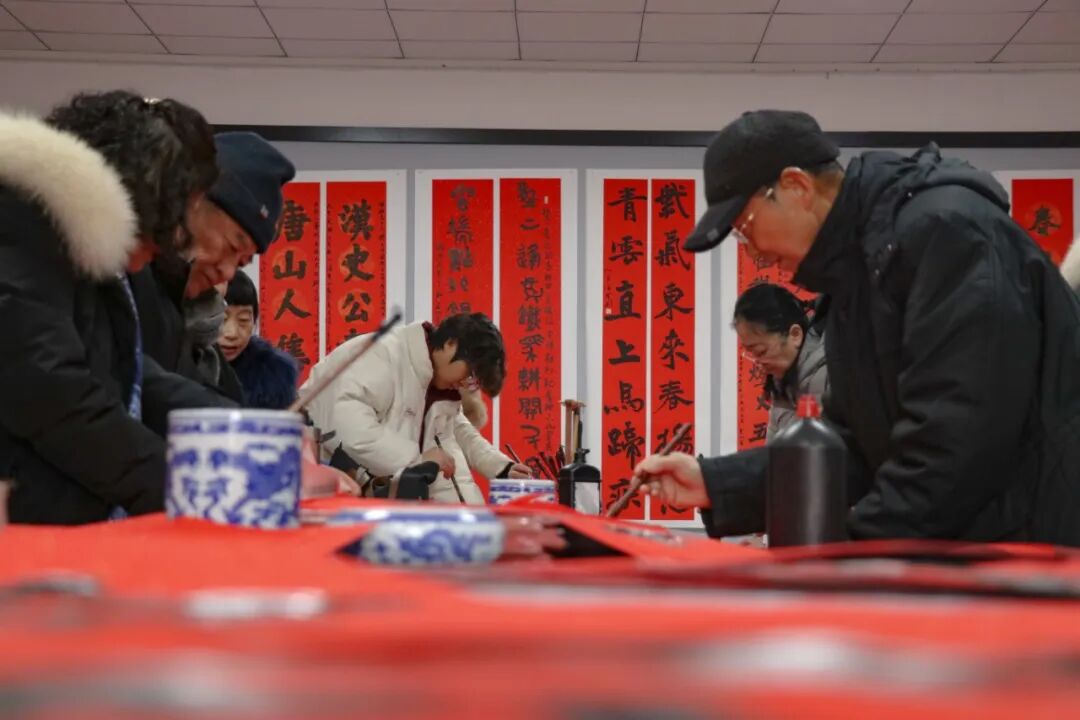 春节期间的春联展,正是惠民理念的集中体现。活动现场,书法名家与民间爱好者并肩挥毫,市民排队领取手写春联和“福”字,孩子们围在桌旁观摩学习,墨香与笑语交织成最温暖的年俗图景。“买的印刷品再精美,也少了这份手写的温度。”市民张景民小心翼翼地捧着刚领到的春联,“现在房子越住越宽敞,贴上这样的文化年货,家里的文化气息一下就浓了。”大市场承办的展览,让艺术服务主动贴近群众。
