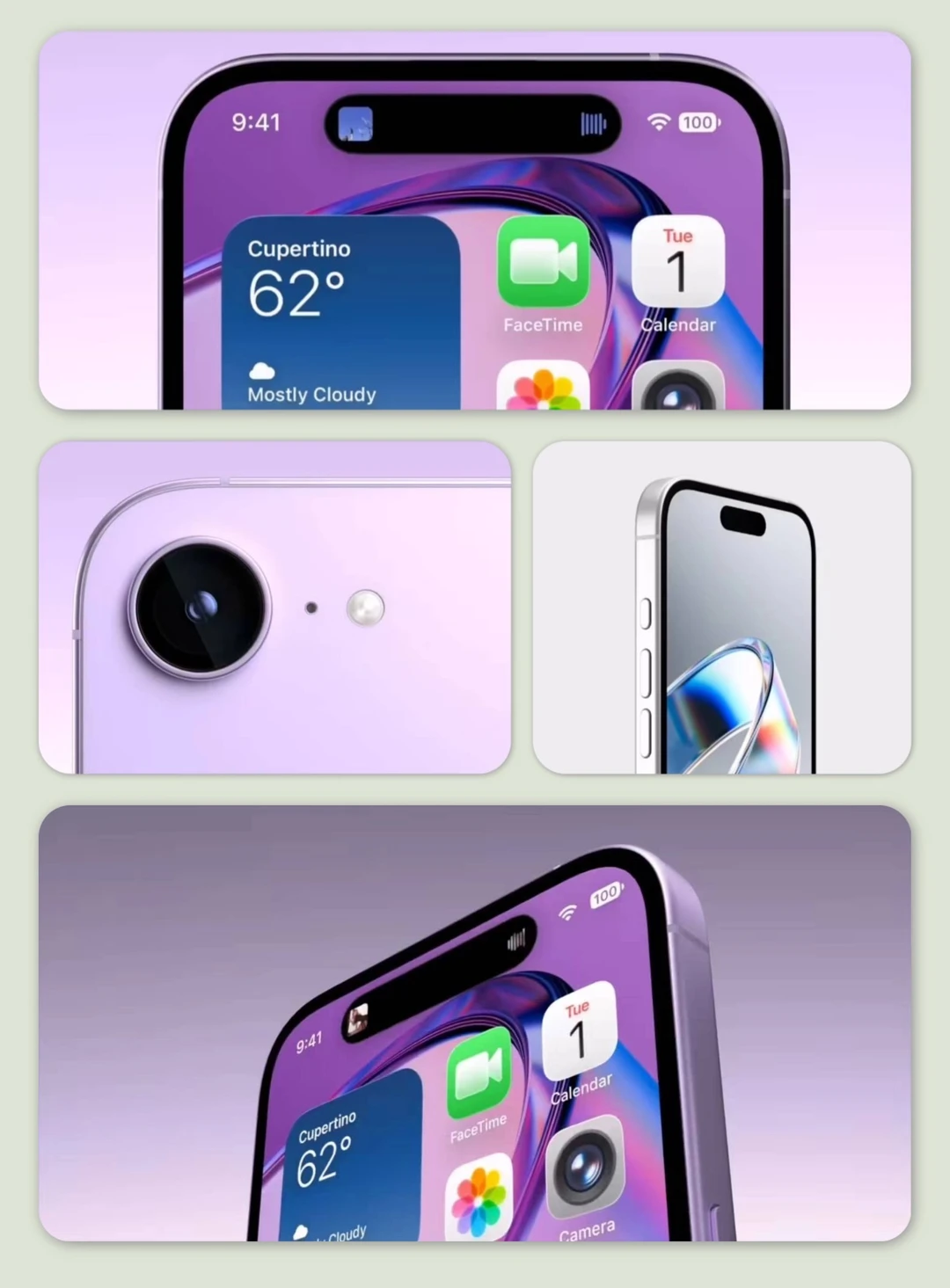 外观方面,iPhone 17e配备6.1英寸屏幕,依然是60Hz刷新率。渲染图显示了该机的灵动岛设计方案,不过也有可能依然沿用刘海屏。