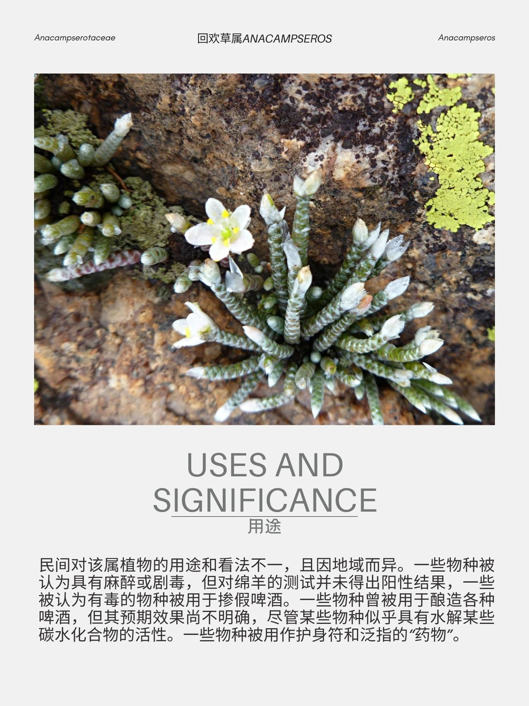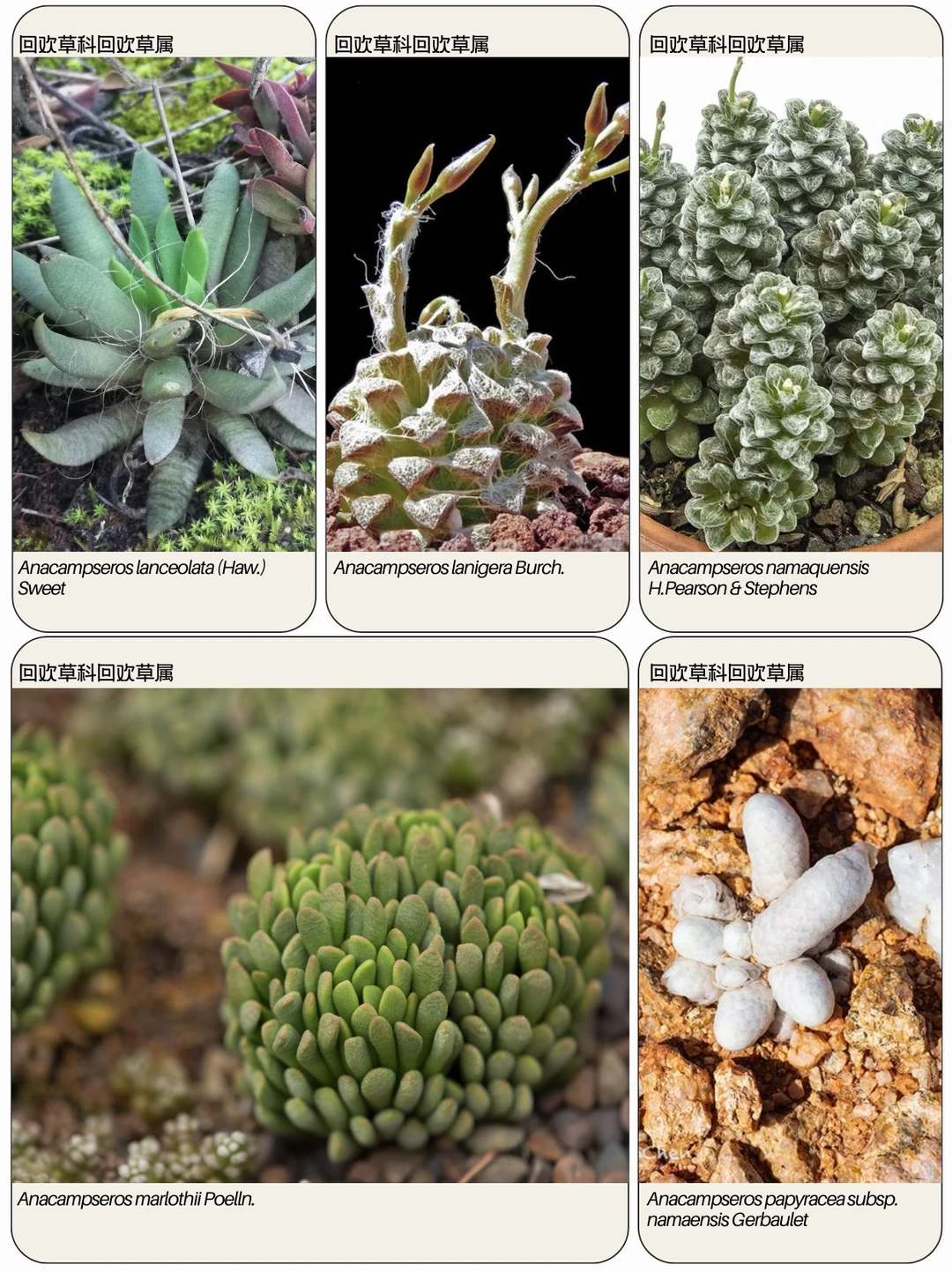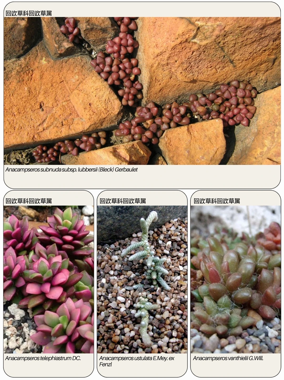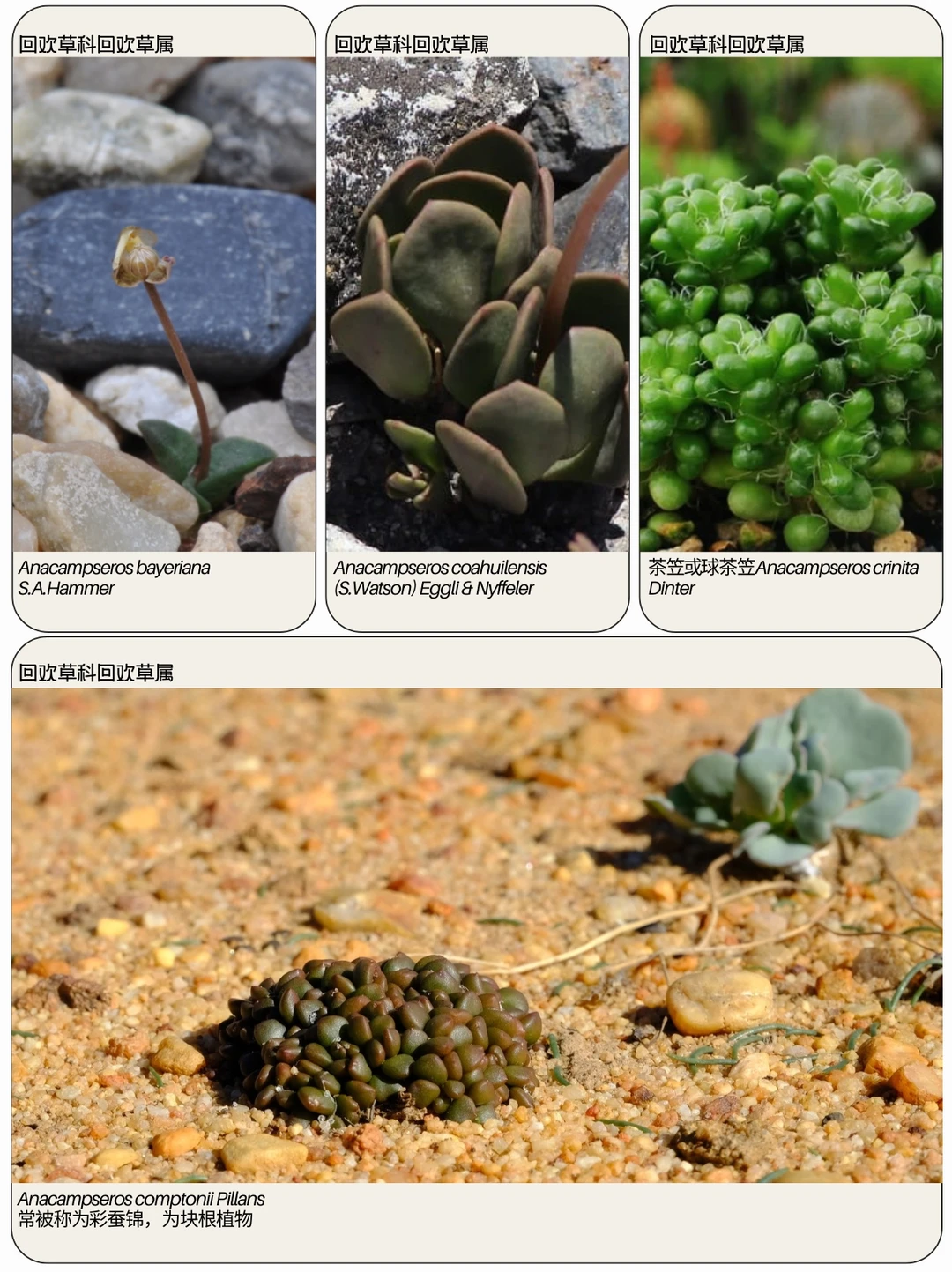 回欢草属 Anacampseros L. 是一个包含约一百种小型多年生多肉植物的,回欢草科Anacampserotaceae属,原产于南部非洲、埃塞俄比亚和拉丁美洲。其植物学名 Anacampseros,意指具有挽回爱情功效的草药。
